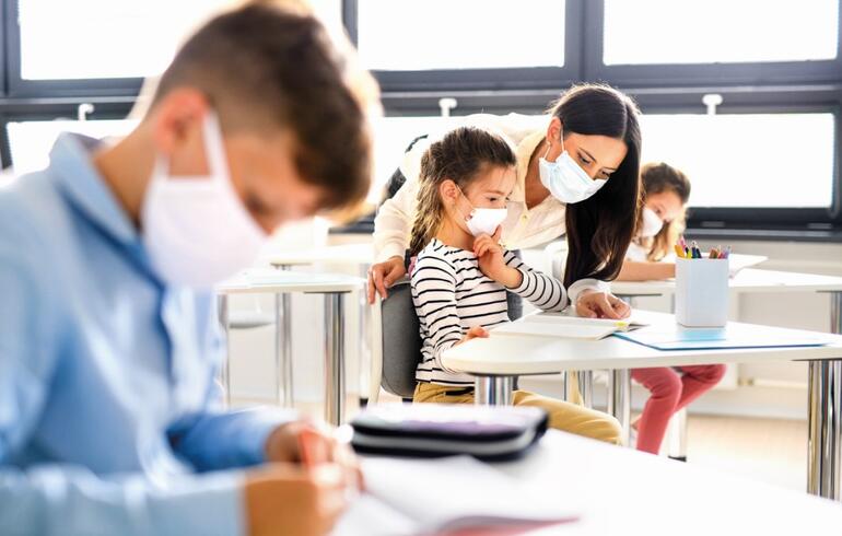 Covid-19 Salgınında Okullarda Alınması Gereken Önlemler Rehberi'nde, okullarda tüm öğrencilerin ve öğretmenlerin okula maske ile geleceği bilgisine ve okul saatleri boyunca tıbbi maske kullanımının nasıl olacağına ilişkin tüm detaylara yer verildi.