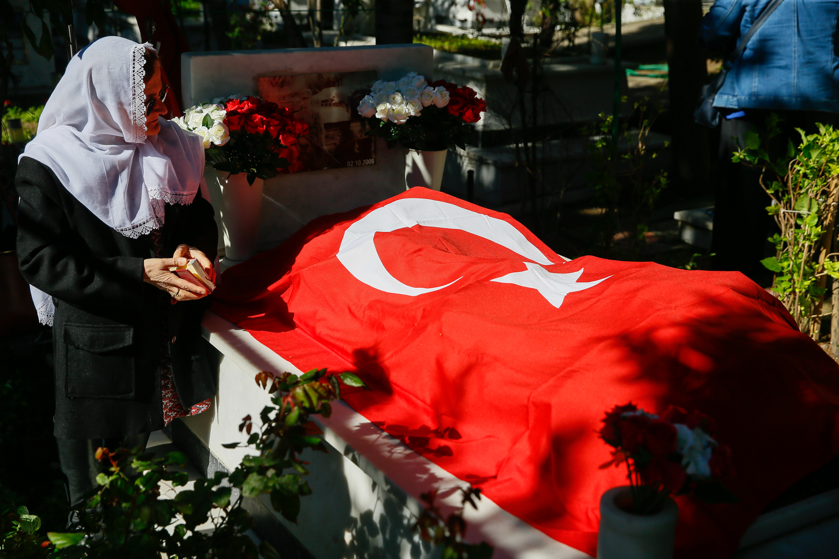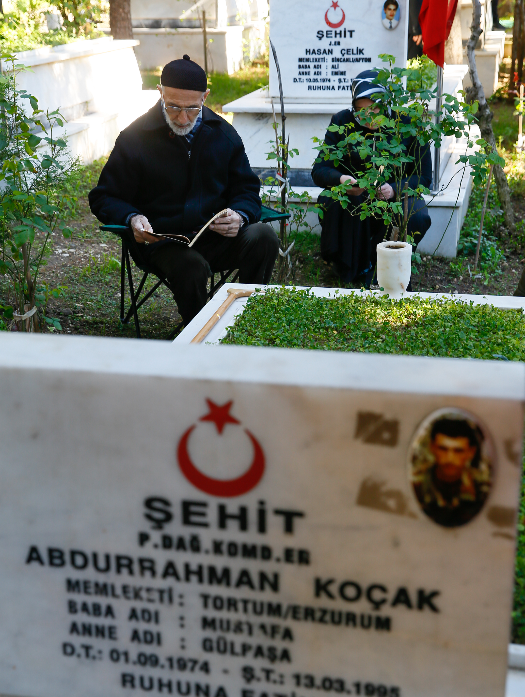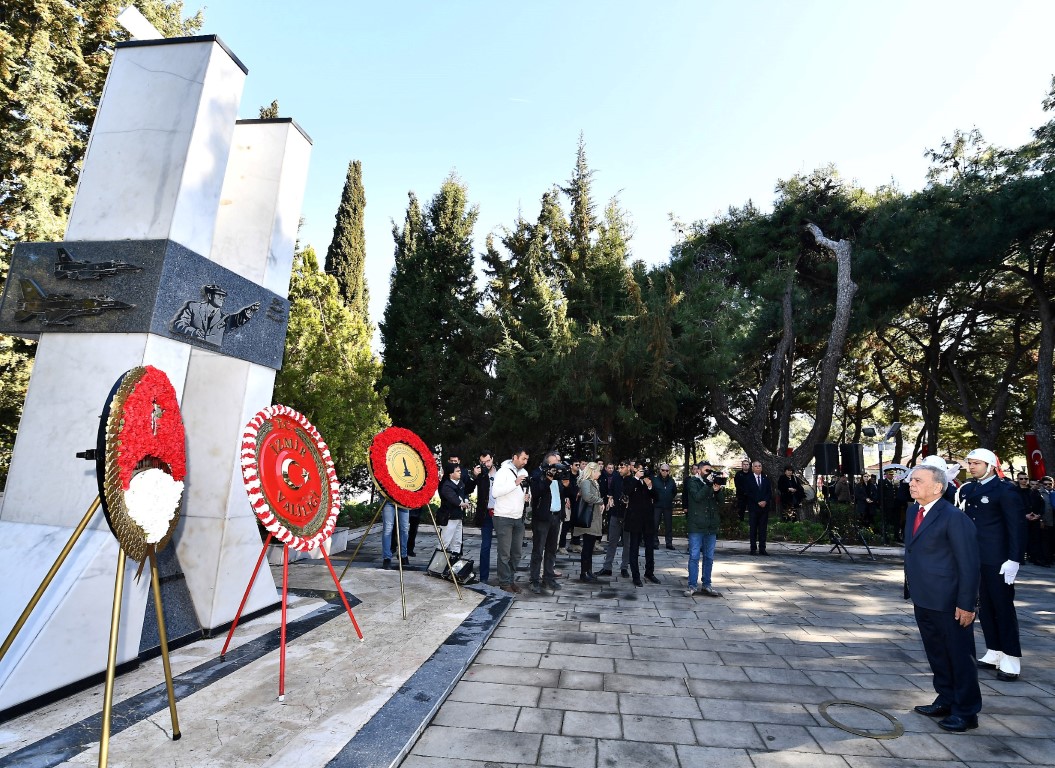 İzmir İl Müftsüsü Recep Şükrü Balkan’ın duasın ın ardından İzmir Valisi Erol Ayyıldız, Ege Ordusu ve Garnizon Komutanı Abdullah Recep ve İzmir Büyükşehir Belediye Başkanı Aziz Kocaoğlu, şehit mezarlarını ziyaret ederek karanfil bıraktı.