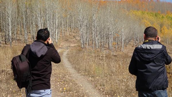 Fotoğrafçılar, renk cümbüşünün en güzel anlarını objektiflerine yansıtırken, bazı vatandaşlar ise 11 kilometrekare alanı bulunan gölde balık avlamaya çalışıyor.