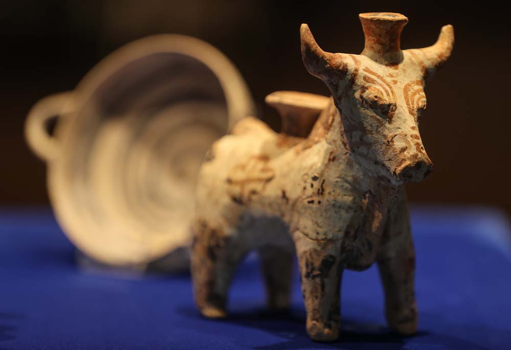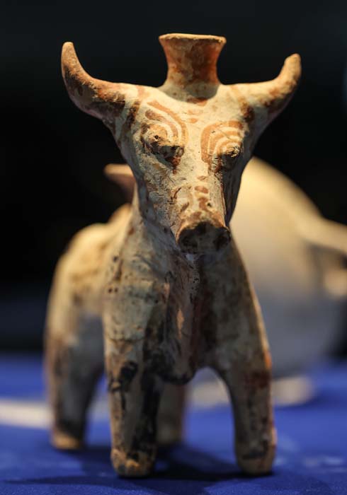 Keser, mezarlardan çıkan bir diğer önemli eserin de tanrılara içki sunmakta kullanılan boğa formunda biçimlendirilmiş riton (Kutsal sayılan sunu kabı) olduğunu dile getirerek, "Boğa figürü neolitik dönemden geç antik döneme kadar kesintisiz şekilde en çok kullanılan figürlerden biri olmuştur.