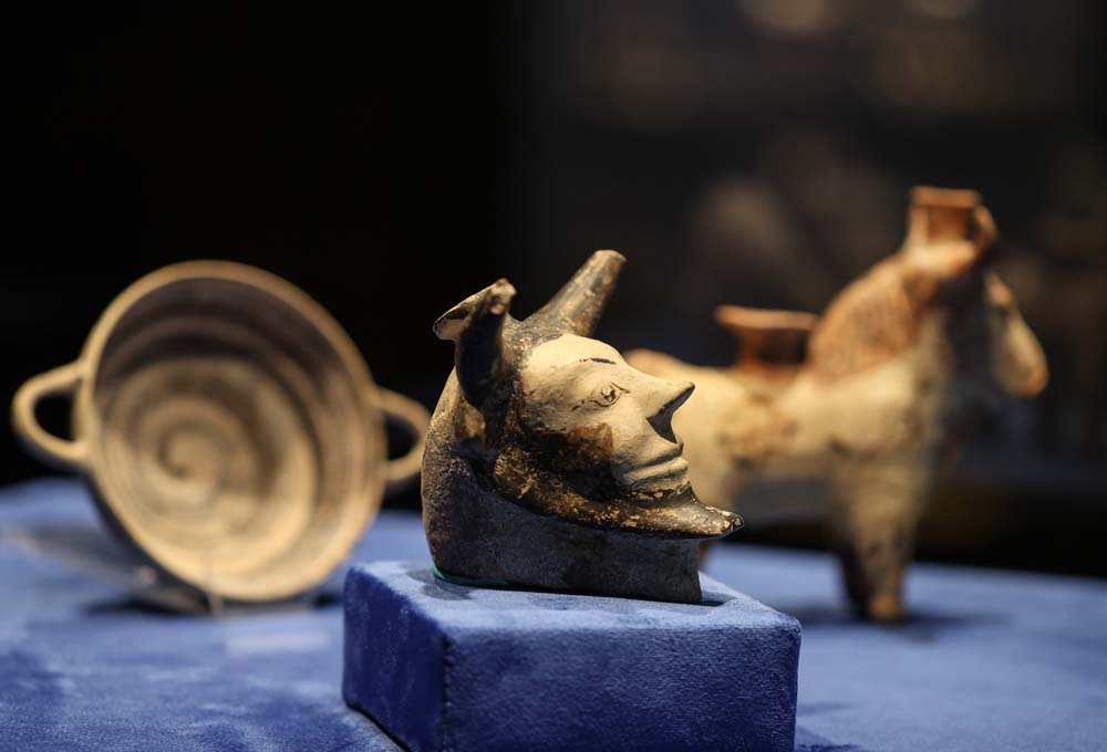 "Nekropolden elde edilen bu tip eserler kullanım için değil, sunu amaçlıdır. Ölü hediyesi olarak ölen kişinin yanına gömülmüştür. Antik dünyada tanrılara hizmet etmek, sunu yapmak adettendi. Bu kaplarla da tanrılarına içki sunmak ve onların takdirini kazanmak istediler."