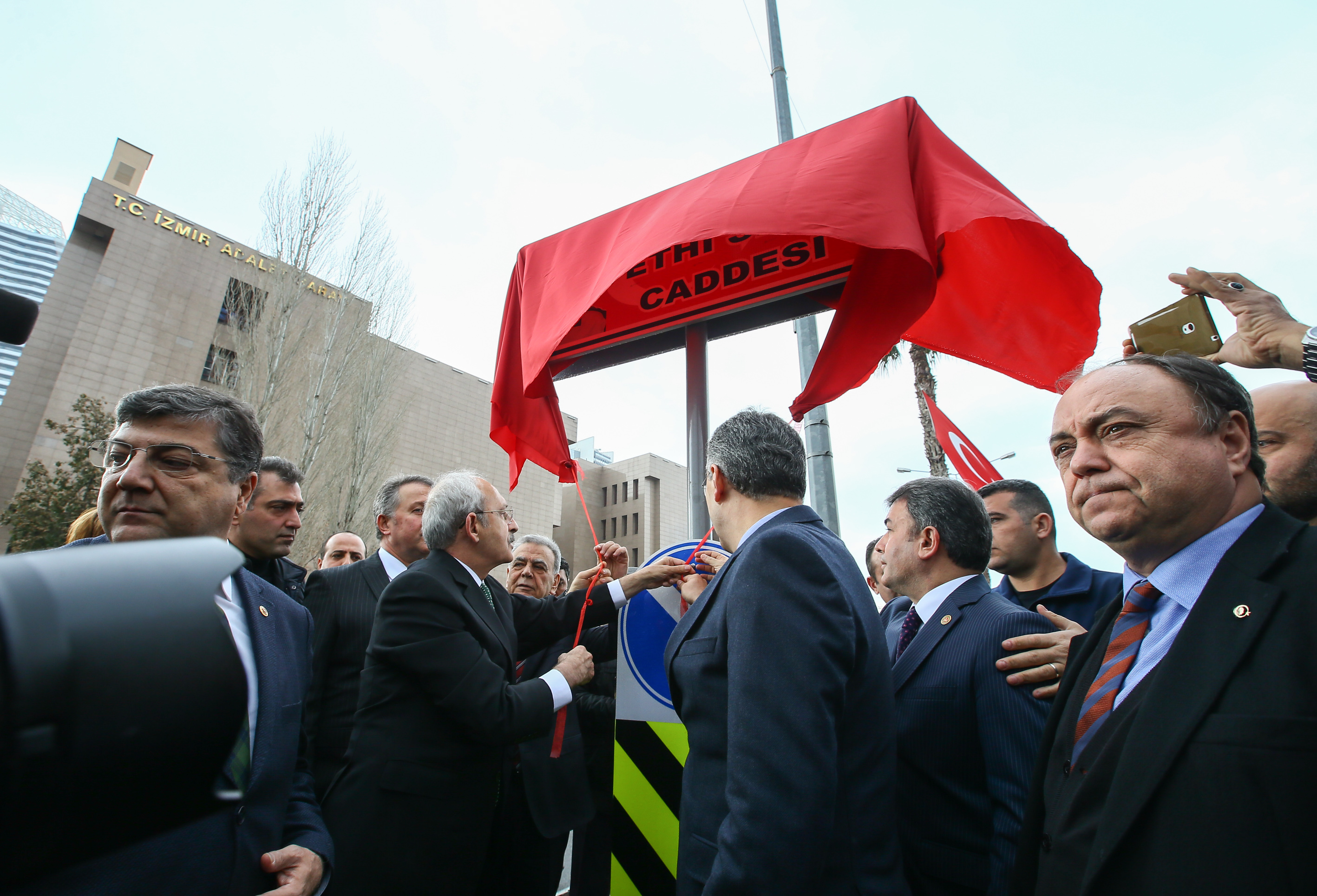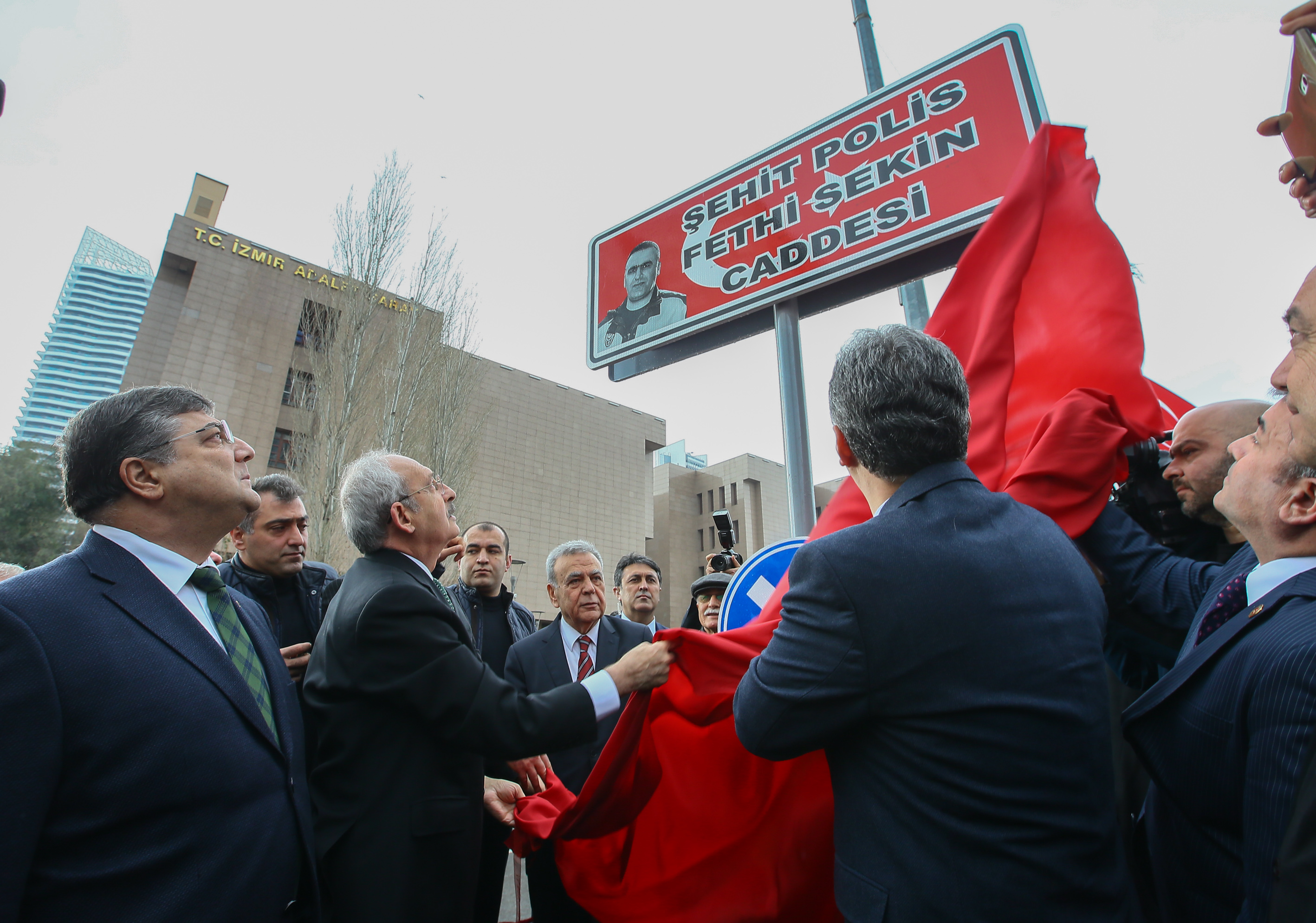 CHP Lideri Kılıçdaroğlu'nun da katıldığı 2 törenle adliye saldırısında şehit olan Kahraman Polis Fethi Sekin ve Musa Can'ın isimleri Bayraklı'daki 2 caddeye ve yeni yapılan parka verildi. Kılıçdaroğlu, "Askere, polise sıkılan kurşun millete sıkılmıştır" dedi.