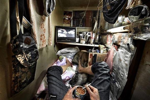 Tüm hayatını bu 2 metrekareye sığdırmaya çalışan Hong Konglular bu dairelere aylık 307 dolar ödüyor.