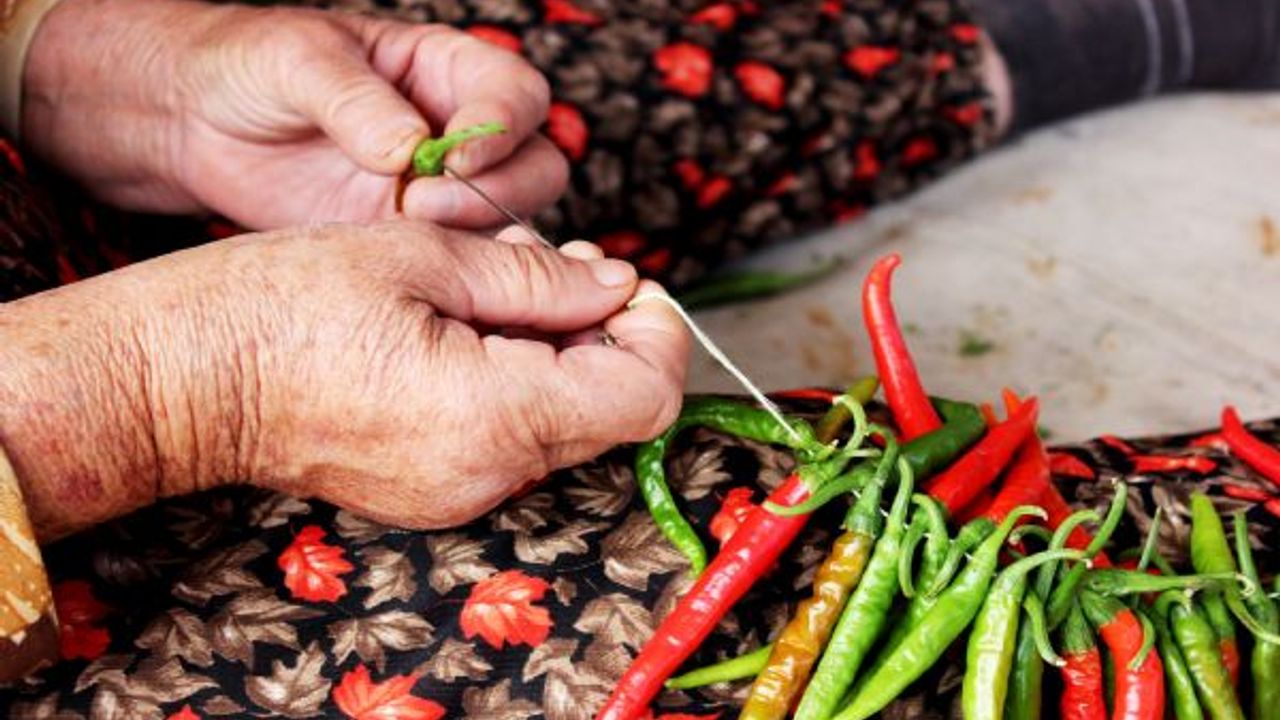 Tazesi 10, kurusu kilogramı 100 liradan satılan kırmızı biber, bir çok ailenin ekonomisine katkı sağlıyor.