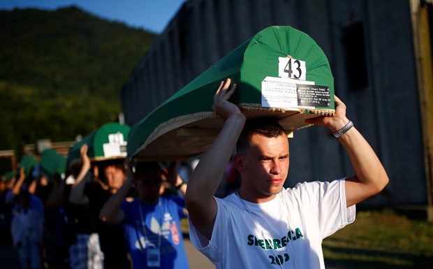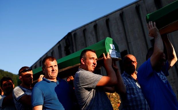 Srebrenitsa'nın 11 Temmuz 1995'te Sırp birlikleri tarafından işgal edilmesinin ardından BM bünyesindeki Hollandalı askerlere sığınan sivil Boşnaklar, Sırplara teslim edildi.