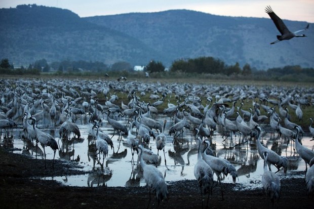 15 yıldır Hula vadisinden geçen 120 bin turnanın üçte biri kışı İsrail'de geçiriyor. Yolu kısaltmalarının tek nedeni küresel ısınma değil. Vadinin eski haline dönüştürülmesi de bunda etkili oluyor. Göçmen kuşlara tarlaları talan etmemeleri için yem olarak günde birkaç kez mısır veriliyor.
