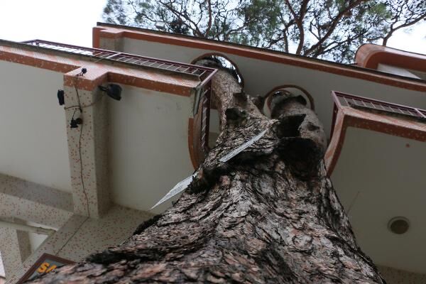 Binanın 2'nci ve 3'ncü katının balkonundan geçerek yükselen kızılçam ağacı, görenlerin beğenisini topladı. Yapıyı görenler hem şaşırıyor hem de önünde fotoğraf çektirmeden ayrılmıyor.