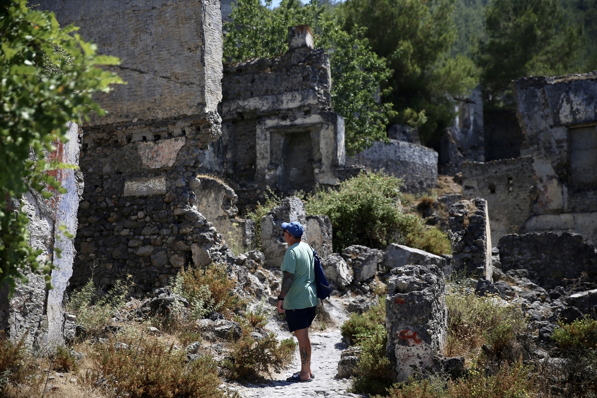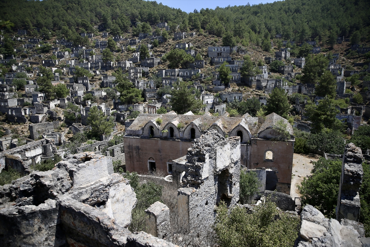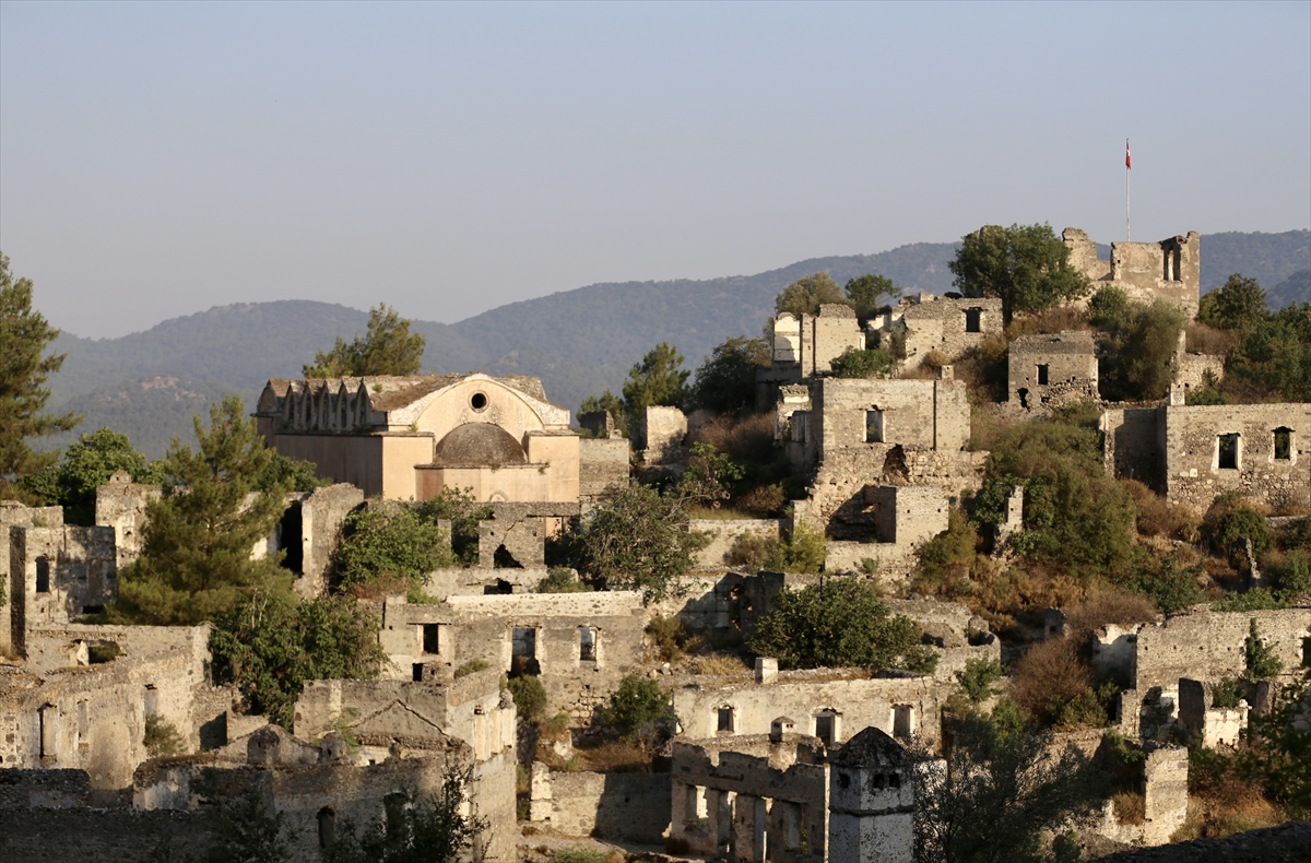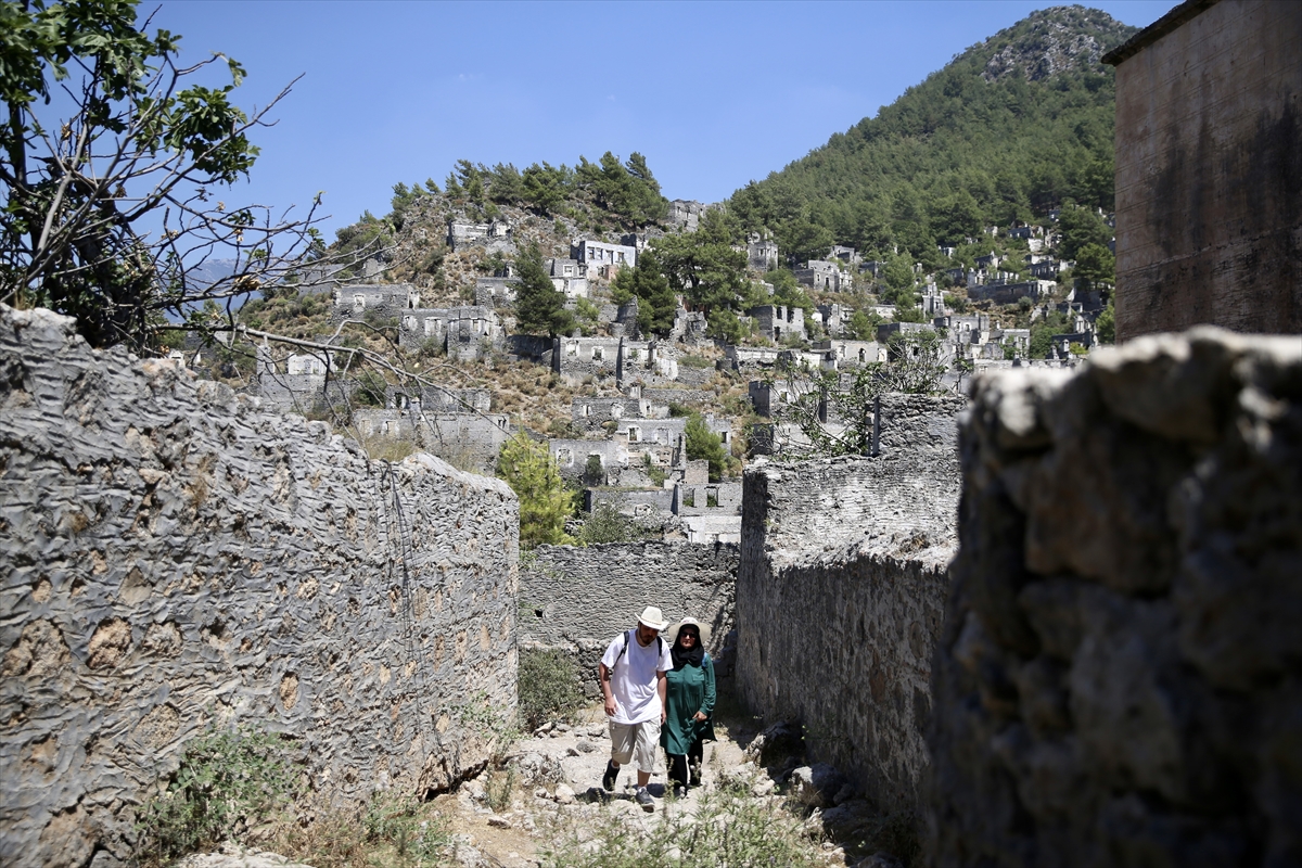 Muğla'nın Fethiye ilçesinde yıllar önce terk edildiği için "hayalet köy" olarak da anılan ve kesin korunacak hassas alanlar arasında bulunan Kayaköy, ziyaretçilerin dikkatini çekiyor.
