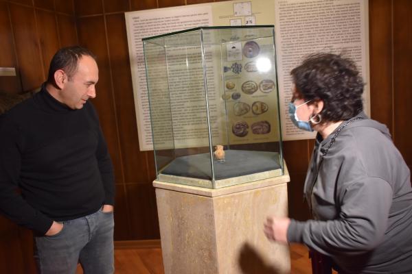 Yaklaşık 8 santim yüksekliğinde şişkin karınlı içi boş minik kap. Kolye uçları ise günlük kişisel kullanım amaçlı. Hepsi özel mermerden yapılmış. İdol dediğimiz ana tanrıçayı sembolize eden eserler. Bugün günümüzde nazarlık dediğimiz kolye ucu şeklinde ya da insanların taşıyabileceği şekilde yapılmış küçük eserlerimizdir. Bunlar da 5 bin yıllık eserlerdir" dedi. (DHA)