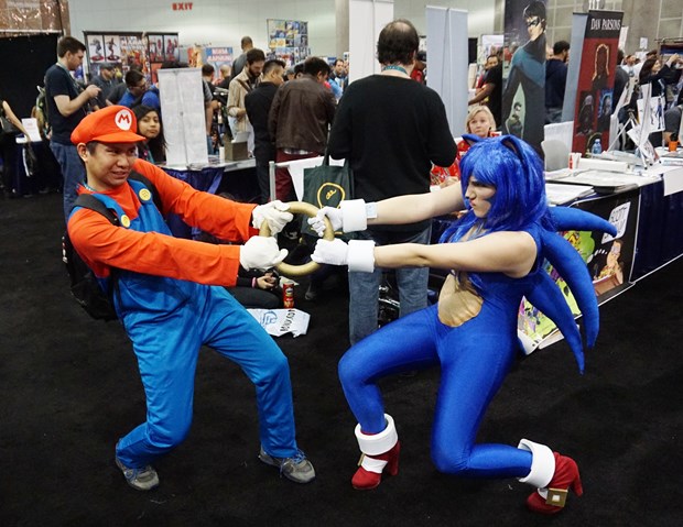 Los Angeles Convention Center’da gerçekleştirilen fuarda, ünlü çizgi roman, oyuncak, bilim kurgu film, televizyon dizisi ve roman kahramanlarının kostümlerini giymiş katılımcılar dikkat çekti.