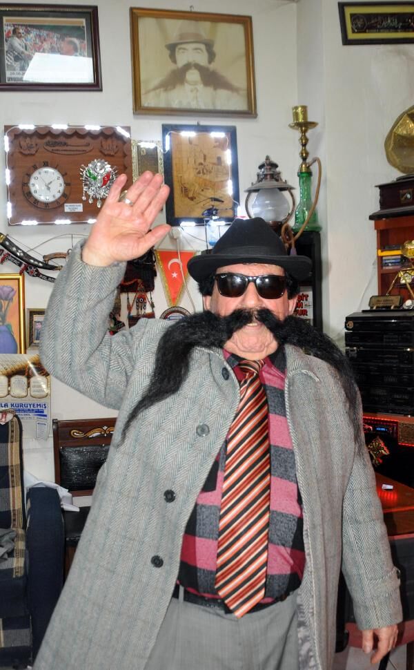 "Bıyıklarımı çok seviyorum. Sabah gelip müşteriye kapıyı açar açmaz, bıyıklarıma bakarım. 60 yıldır bıyıklarıma hizmet ettim. Özel bir bakımı var ama ben bu güne kadar kimseye söylemedim. Bundan sonra da söylemem, sır. 1,5 metre şu anda. İki rakibim vardı, onlar da vefat etti. Tek kaldım. Ölsem daha bıyık şampiyonu olan kimse kalmaz. Benden sonra uzatan kimse yok. Daha fazla uzatırım, ama rakibim olmadığı için yapmıyorum. Benim için süslü olsun yeter. Sabahtan akşama kadar belki 100 kişi fotoğraf çektirmeye gelir. Çekince yayın yapıyor. Hem yurt içinden, hem yurt dışından fotoğrafımı çekmek için kuyruğa giriyorlar. Bu yaşta, bu bıyıkla hizmet eden bir şahsın müşterisi olmaz mı? Benim gibi bıyık uzatamazlar. Çünkü bu devirde kalmadı. Cumhurbaşkanı ile 3 kez buluştuk. Benim başımda fötr vardı. Cumhurbaşkanı bu olmasa daha iyi olur dedi. Emine Hanım da, 'Yok pala onunla tanınmış' dedi. Devamlı fötr takarım. Ben kendime çok iyi bakarım. Kravatsız, fötr şapkasız dolaşmam." (DHA)