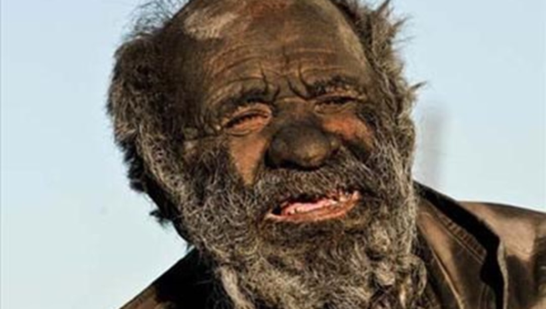 Hijyenik olmayan bir çevrede kötü bir yaşam sürmeye devam ediyor. Vücudunu kir tabakası kaplayan adam 65 yıldır tıraş da olmuyor.