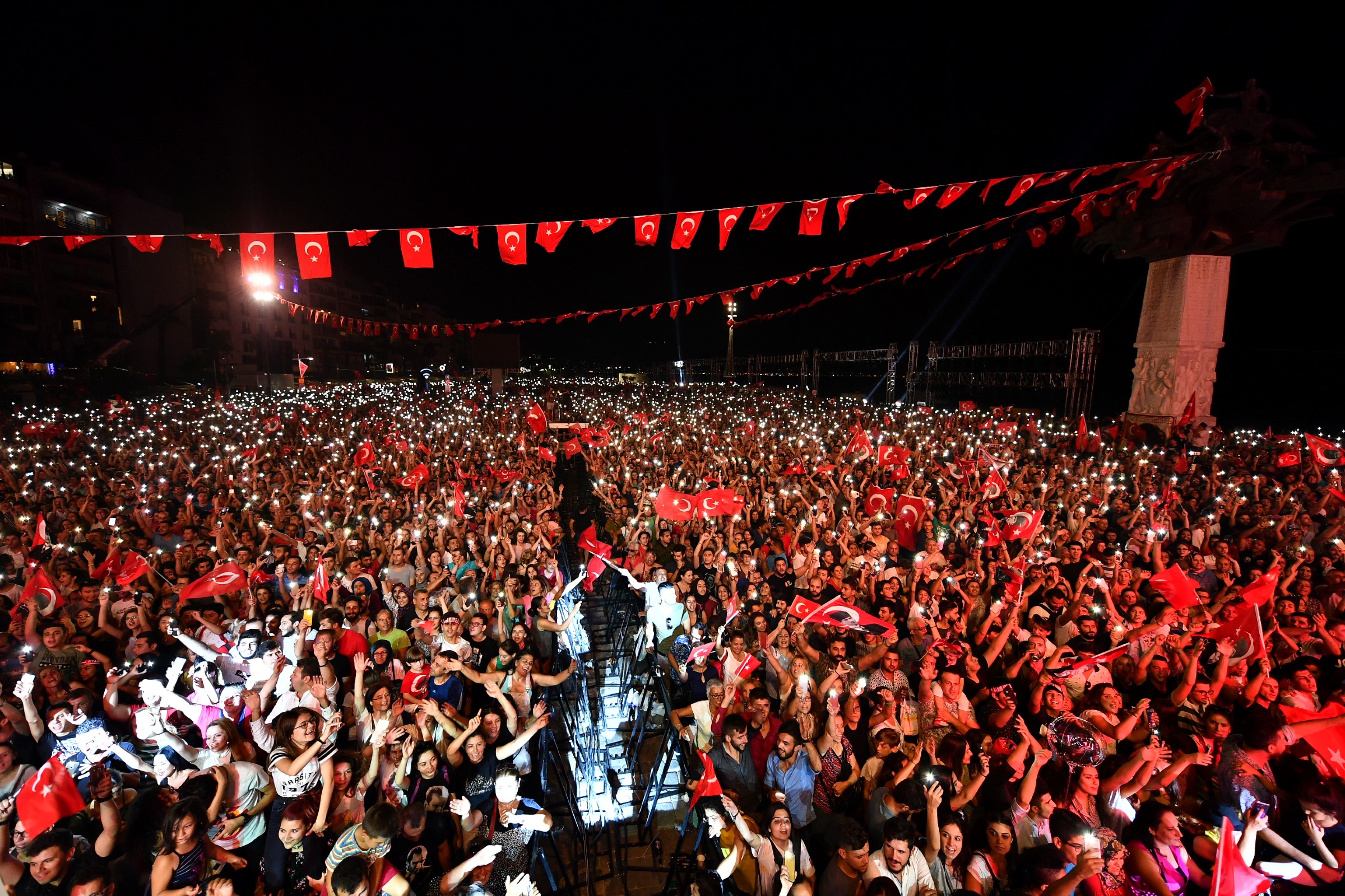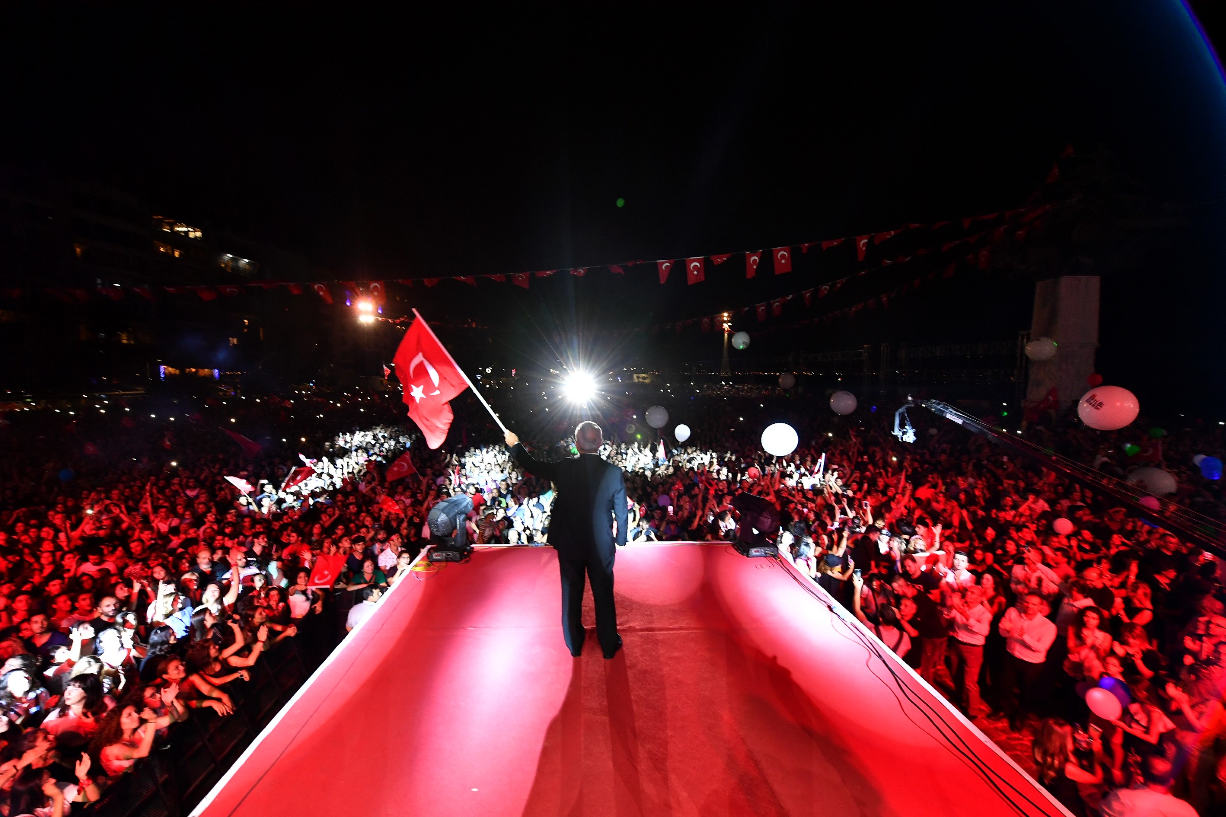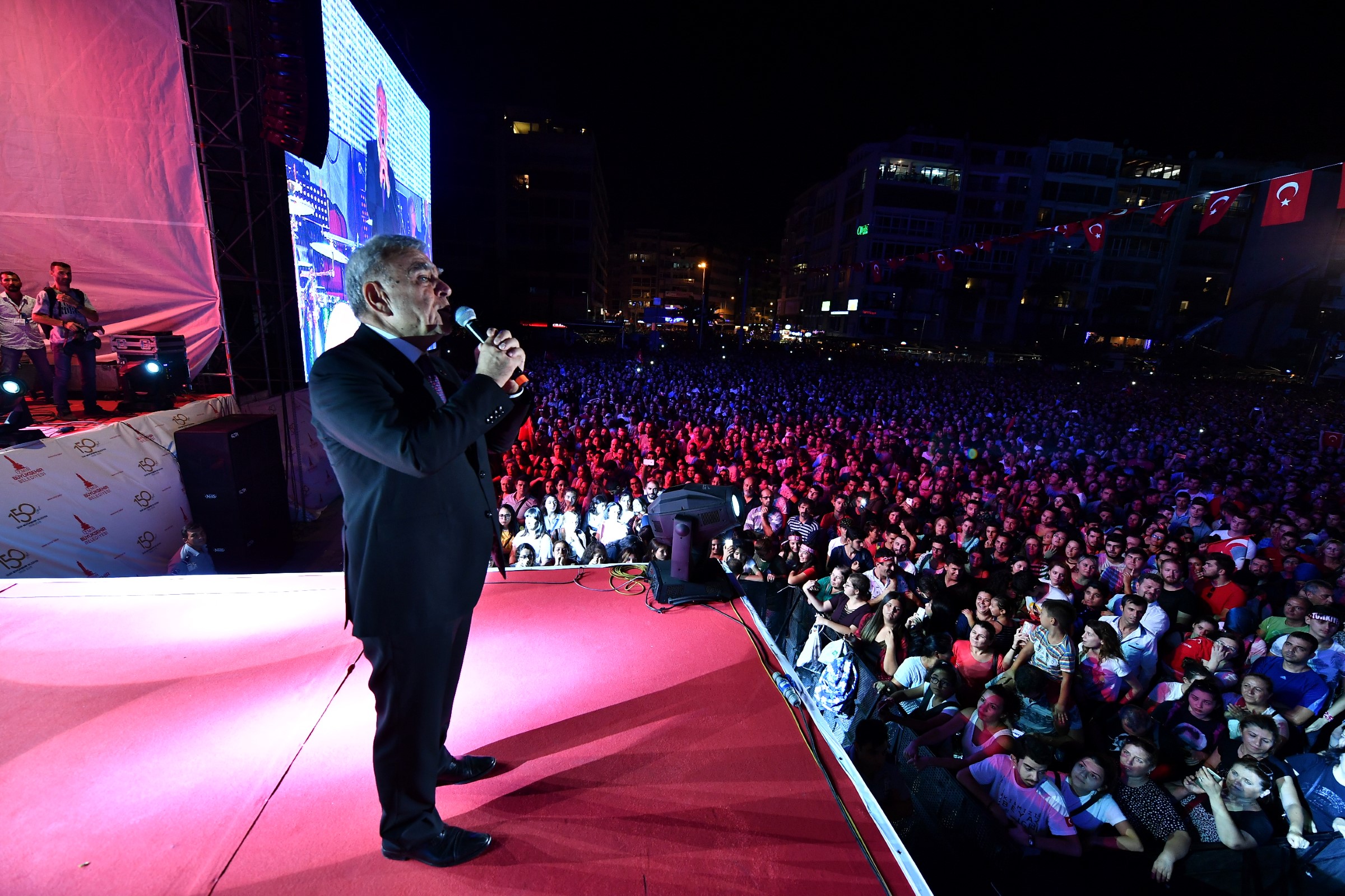 9 Eylül’ü kutlamak için Gündoğdu Meydanı’nda buluşan onbinlerce İzmirli, unutamayacakları bir gece yaşadı.