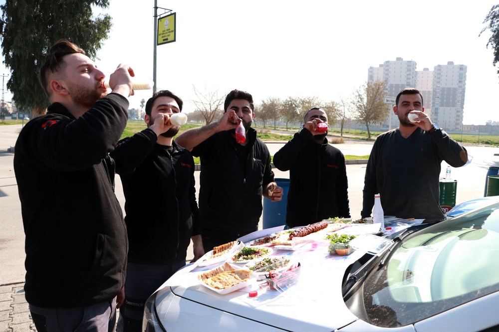 Öğle yemeğini dışarıda yemek için kebapçıya gelen ve otomobillerinin kaputunu masa olarak kullanan bir grup iş arkadaşı ise görenleri şaşırttı. Kaputun üzerine çeşit çeşit salata dizen gençler, kebap dürümünü bu şekilde yedi. İş arkadaşlarıyla öğle yemeklerini genelde otomobil içinde ya da kaputu masa olarak kullanıp yediklerini kaydeden Gürkan Güngör, "Her gün senaryo değişiyor. Bir gün kaputun üzerinde yiyoruz, diğer gün parktaki bankın üzerinde. Bir an önce restoranlar açılsa da bu çileden kurtulsak" dedi.