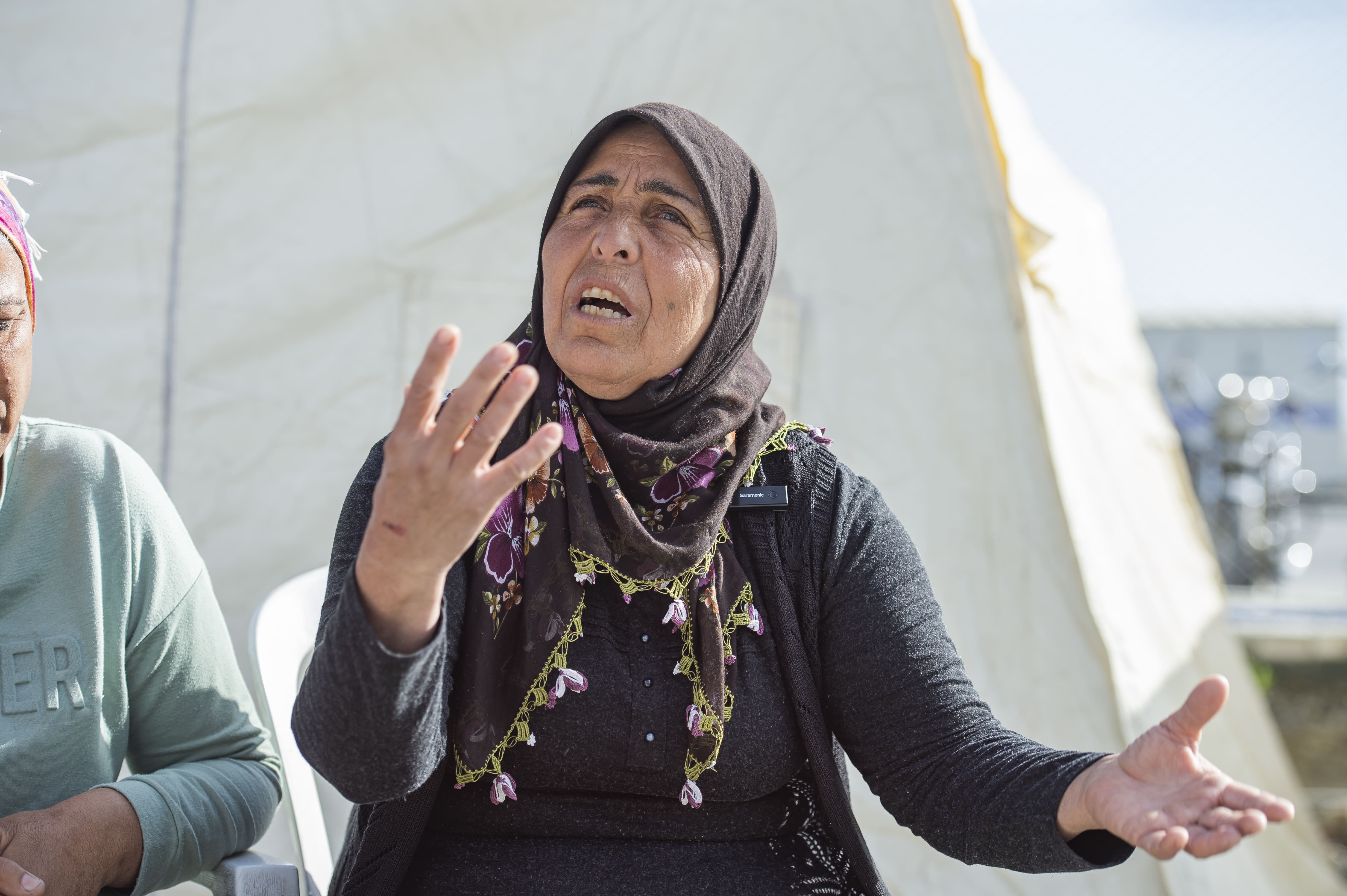 Seniye Bük: “Herkes işinde gücündeydi. Şimdi ne iş ne güç var. Evden bir eşya çıkmadı. Ne yapalım ne edelim! Mal mülk Allah’a kalıyor. Bırakamıyoruz, Türkiye bizim. Nereye gidersek zaten ölüm var. Burada ölelim daha iyi dedik.”