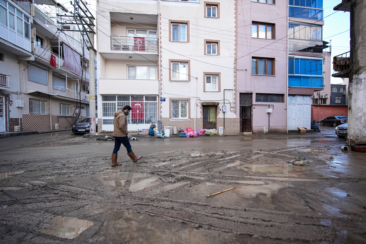 Bornova ilçesi Yeşilova Mahallesi'nde, taşan derinin ardından evleri su ve çamur altında kalan vatandaşlar sabah ıslanan ve bazıları kullanılamayacak hale gelen eşyalarını evlerinden çıkardı. Eşyaların çıkarılmasının ardından komşuları ve yakınlarının yardımıyla evlerini temizlemeye çalıştı.