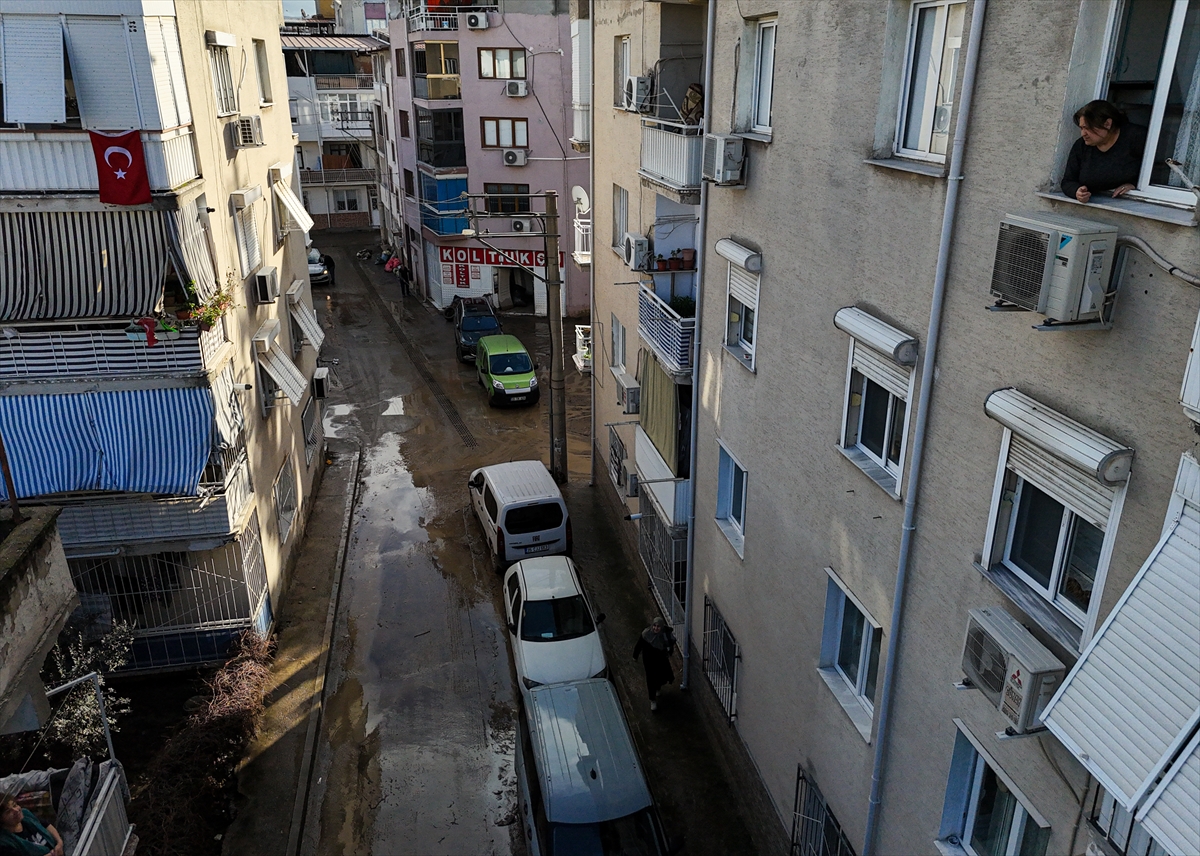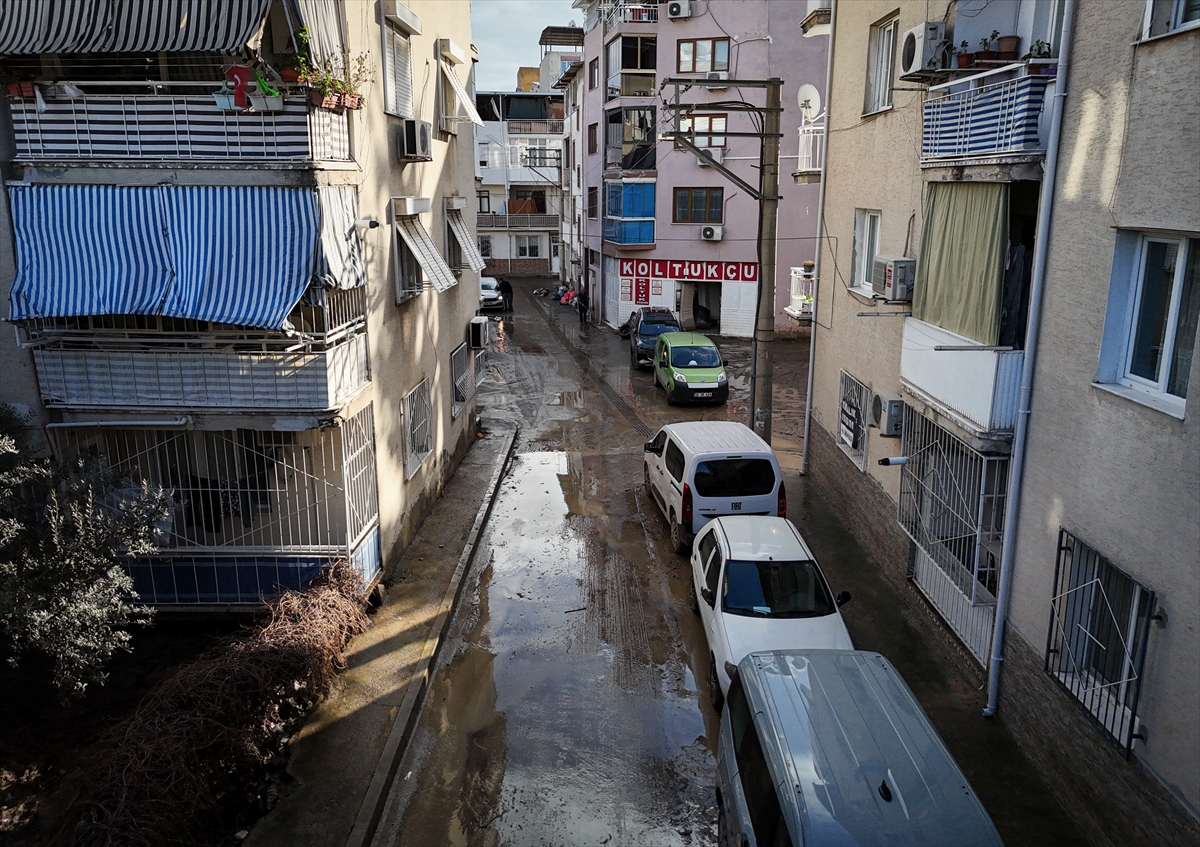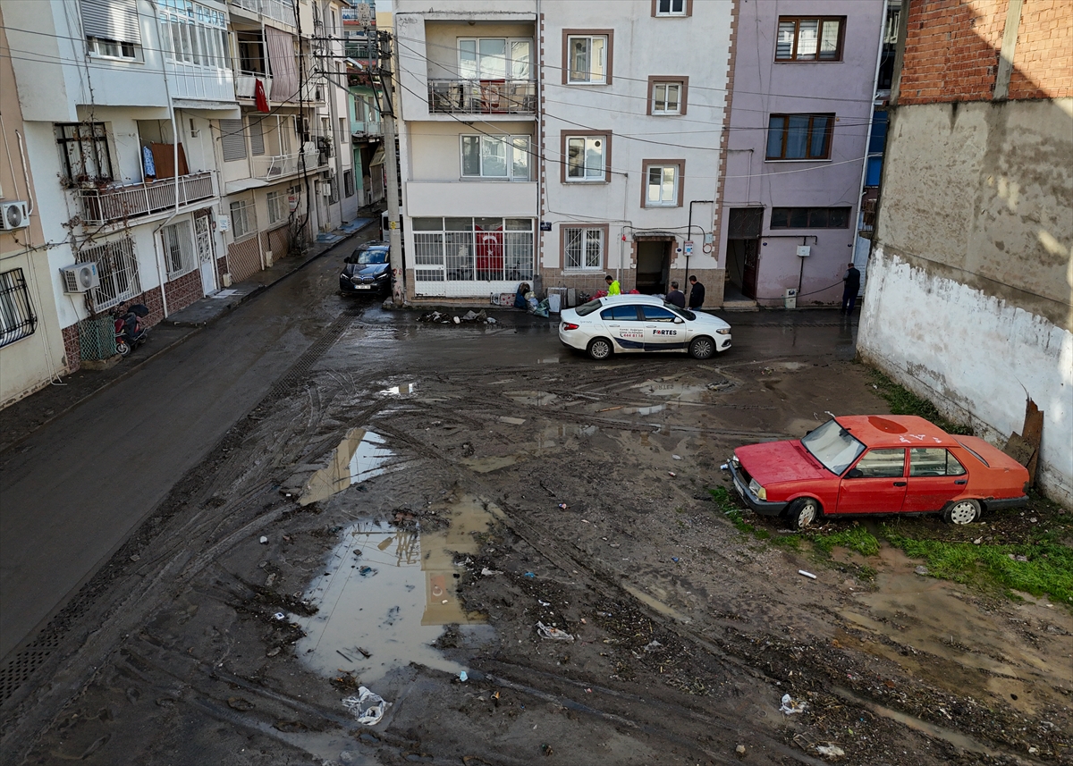 İhbar üzerine bölgeye gelen Bornova Belediyesi ekipleri de çamurla kaplanan sokakları tazyikli suyla temizlemeye başladı.
