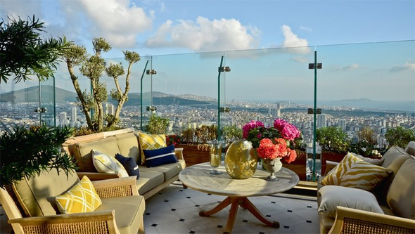 550 metrekarelik penthouse'un şehri kuşbakışı gören bir terası var...