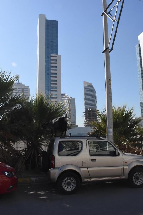 Adalet Mahallesi’nde Manas Bulvarı üzerinde bulunan ve 200 metrelik yüksekliğiyle Avrupa’nın 5'inci, Türkiye’nin de 2’inci ikiz kulesi olan Folkart Towers’ın çevresindeki araçların üzerinde keçileri görenler şaşkınlıklarını gizleyemedi.