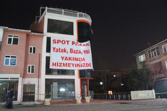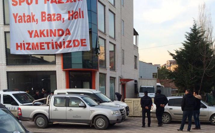 Kocaeli'nin Derince İlçesi'nde arkasından NATO boru hattının geçtiği 4 katlı binayı kiralayarak ön cephesine 'Spot Pazarı yakında hizmetinizde' yazılı pankartı asanların, boru hattına hat çektikleri tespit edilerek baskın düzenlendi.