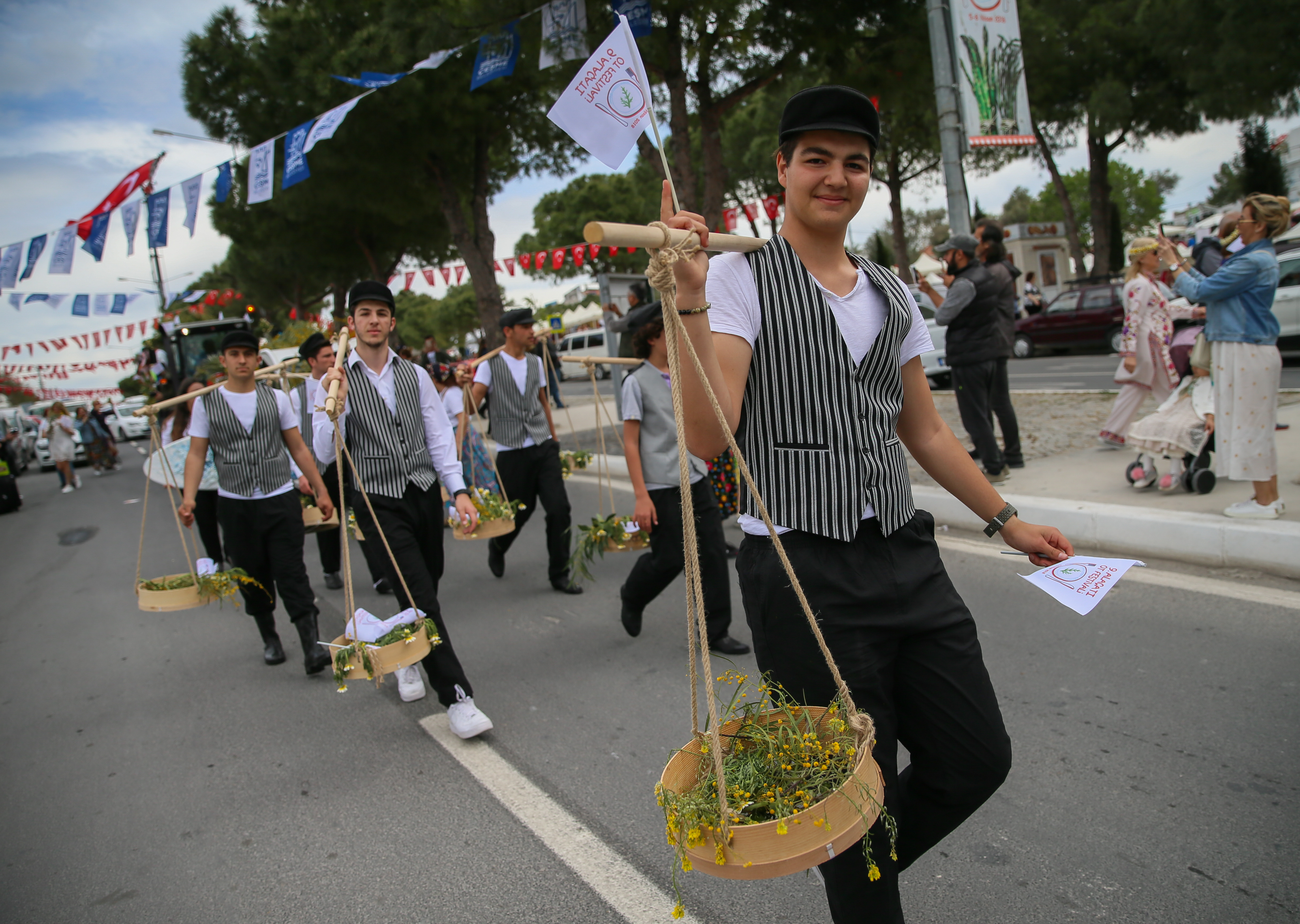 İzmir'in Çeşme ilçesinde, Ege Bölgesi'ne özgü radikadan şevketi bostana, sarmaşıktan arap saçına yüzü aşkın otun sergilendiği 9. Alaçatı Ot Festivali'nin kortej yürüyüşü yapıldı.