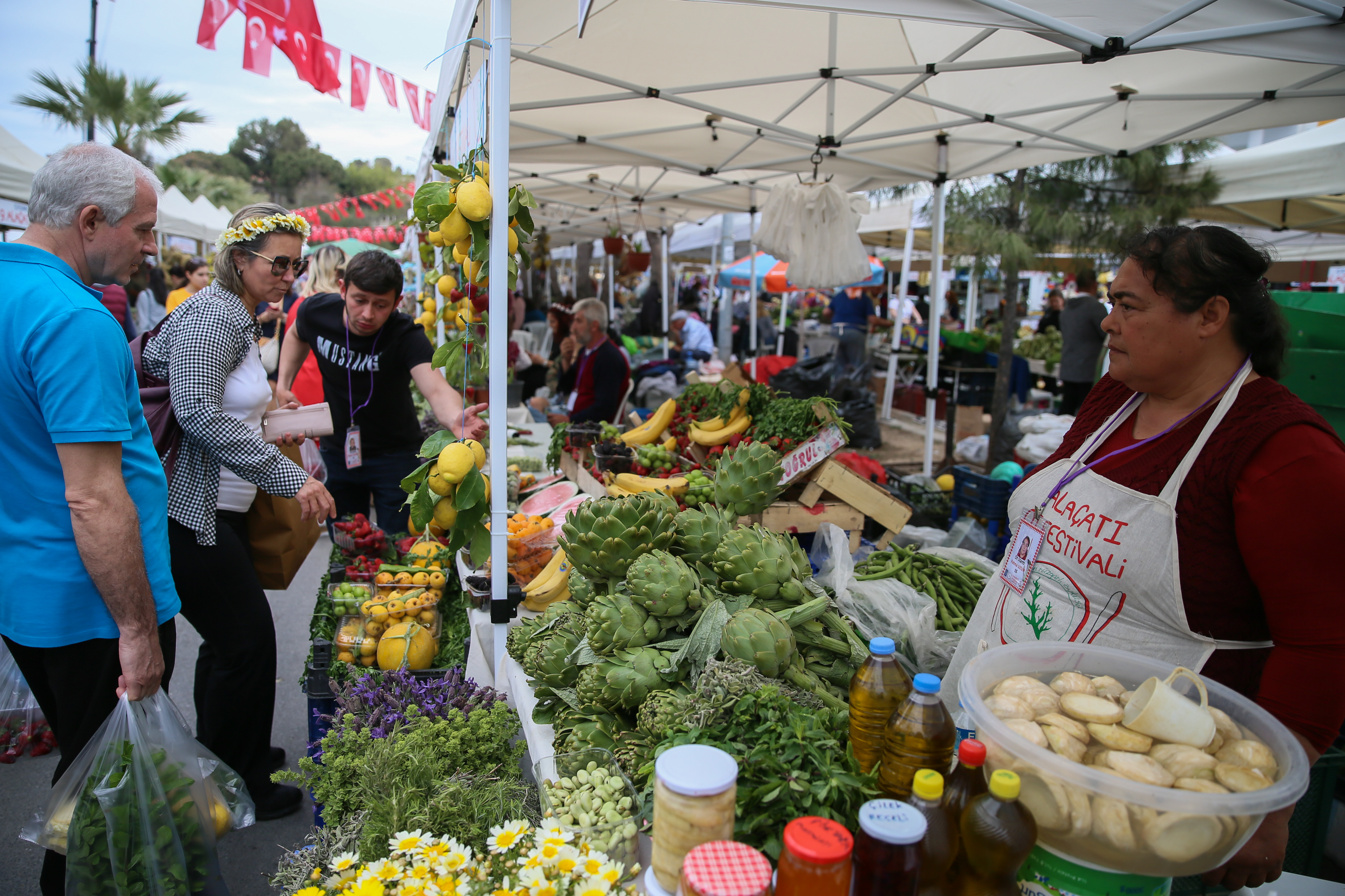 Festival alanını otlar ve otlu yemeklerin bulunduğu tezgahlar süslerken, tezgah sahiplerinden Nazlı Keleş, Çeşmeli olmasına rağmen festivale ilk kez katıldığını, ortamı çok hoş bulduğunu ifade etti.