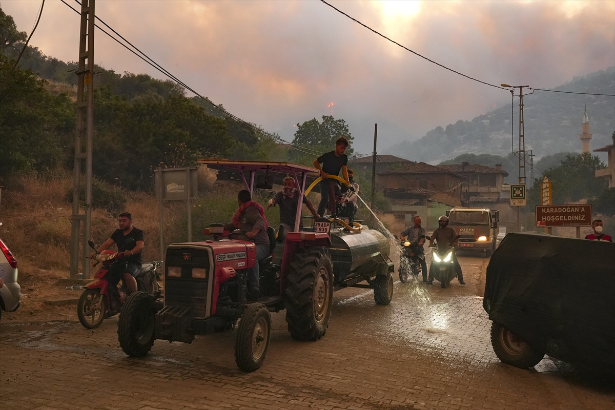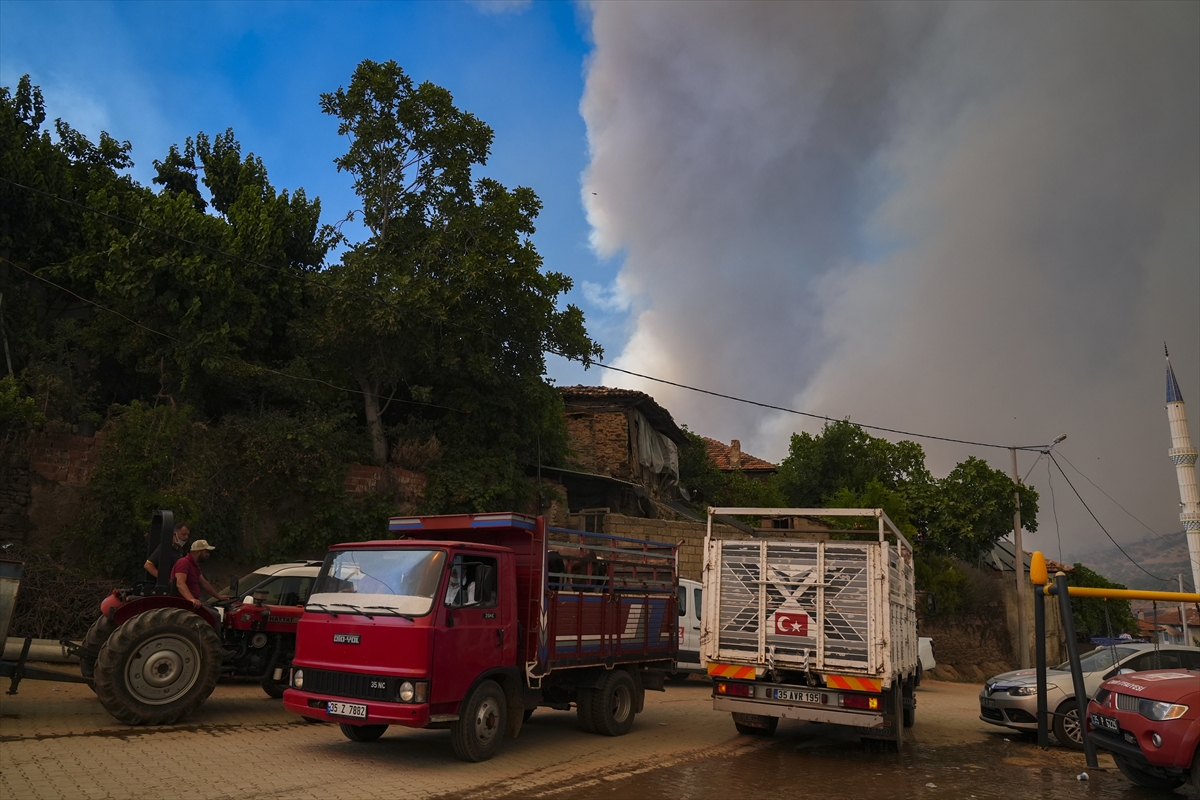 İzmir'in Ödemiş ilçesindeki ormanlık alanda dün çıkan yangına havadan ve karadan müdahale devam ediyor. Öte yandan, rüzgarın etkisiyle hızla büyüyen yangın nedeniyle Üzümlü, Ortaköy ve Karadoğan mahalleleri de tahliye edildi. Vatandaşlar araçlarını ve eşyalarını alarak bölgeden uzaklaştı. Vatandaşlar kamyonlara yükledikleri hayvanlarını bölgeden uzaklaştırmaya çalıştı. Bazı kişilerin küçükbaş hayvanlarını traktörlerinin arkasında, bazılarının da sürüyerek götürdüğü görüldü.