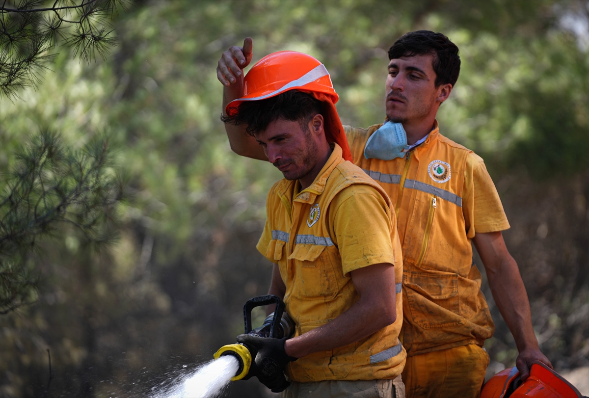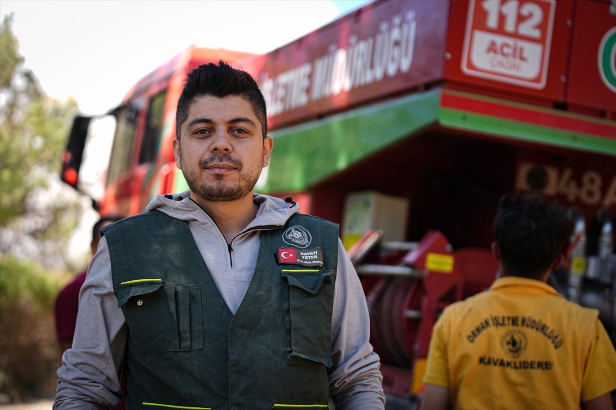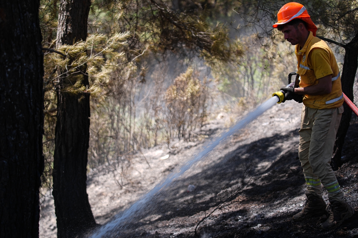 Muğla'dan gelen orman muhafaza memuru Hayati Yeter de rüzgarın kendilerini olumsuz etkilemesine rağmen yangını söndürmek için canla başla mücadele ettiklerini anlattı.