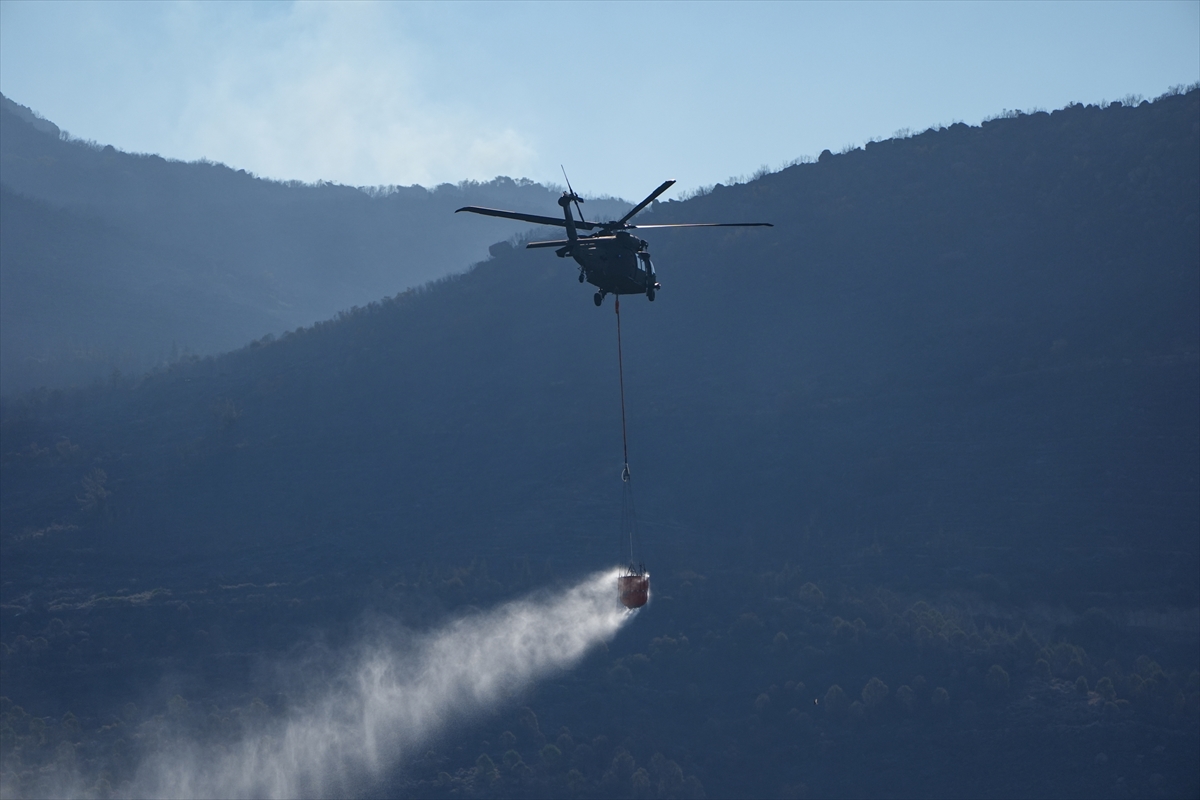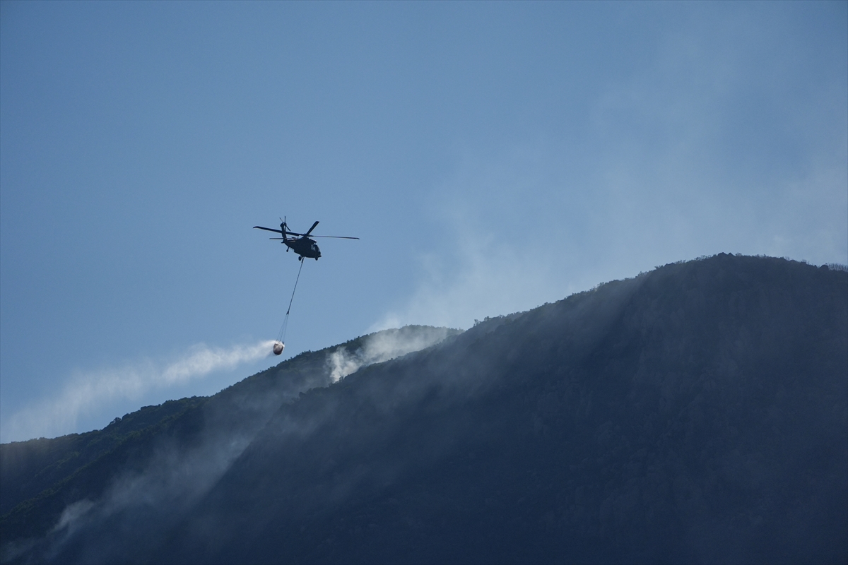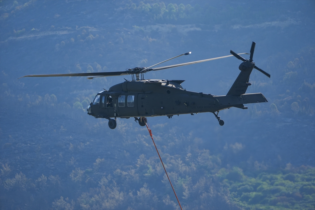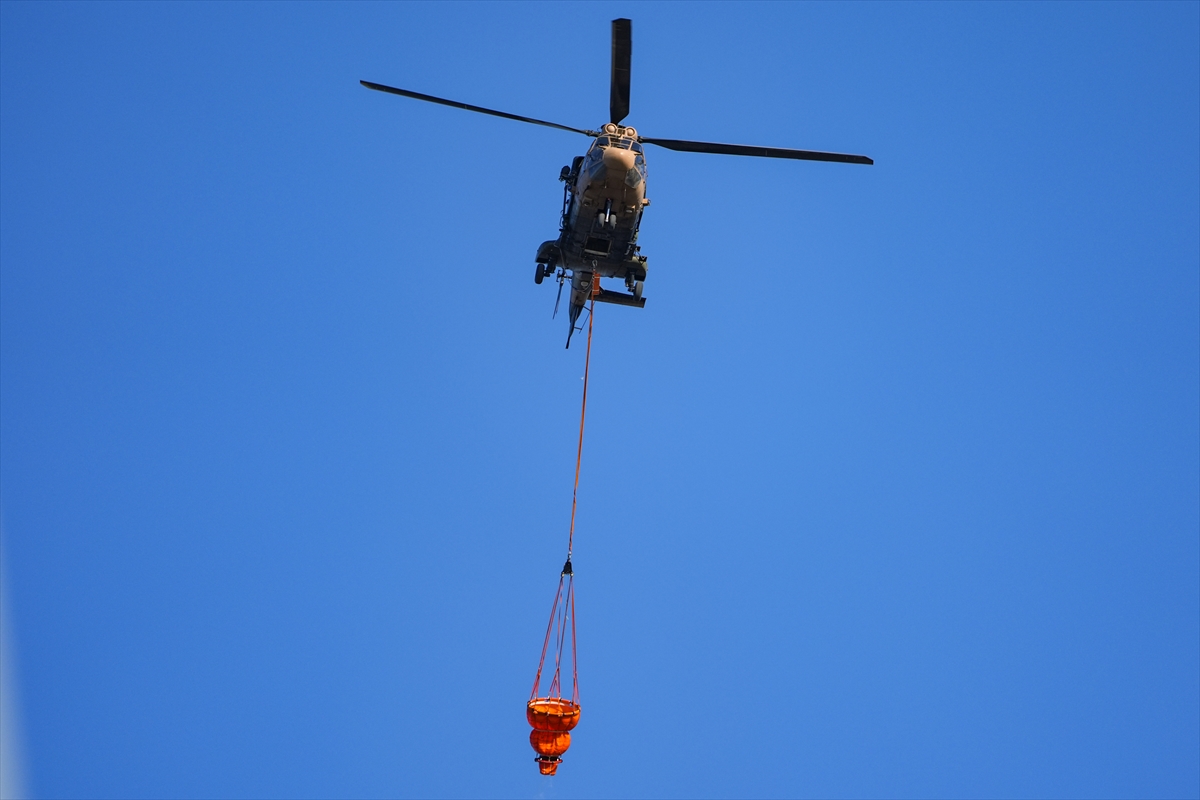 Türk Silahlı Kuvvetlerine (TSK) ait helikopterler de söndürme çalışmalarına destek veriyor.