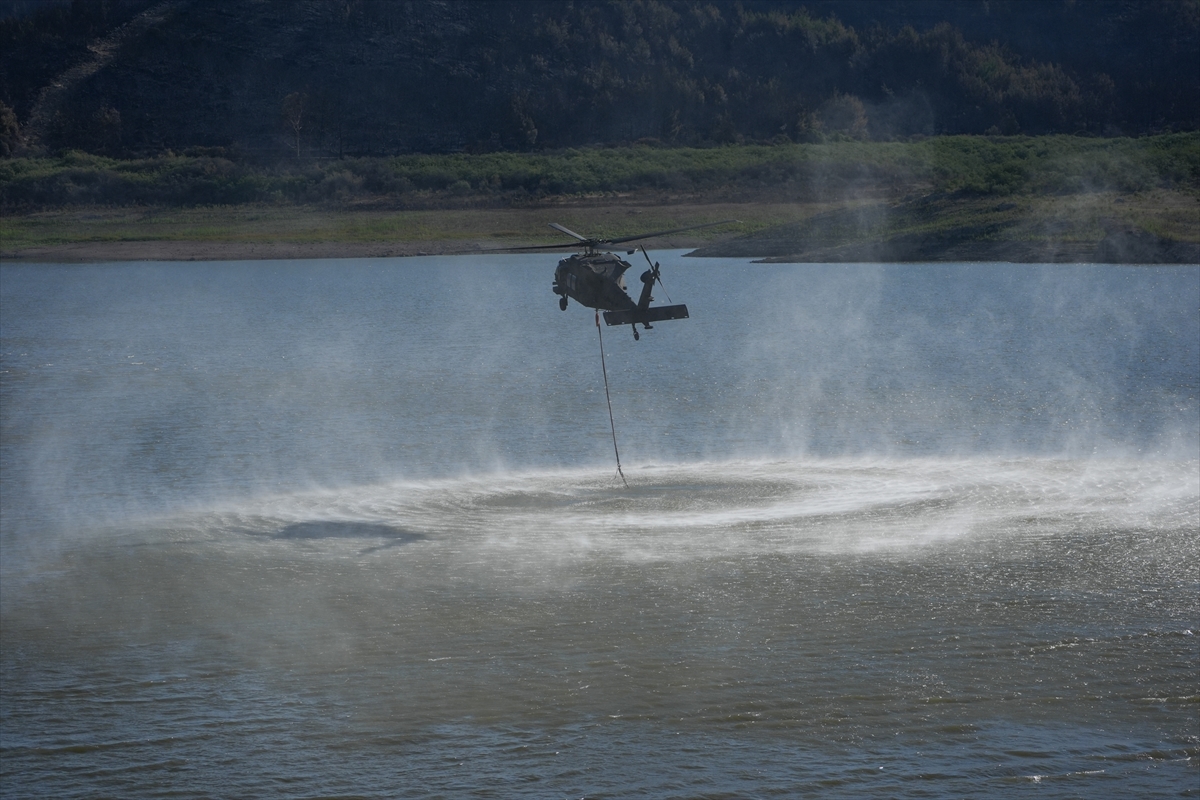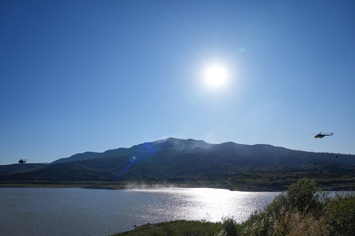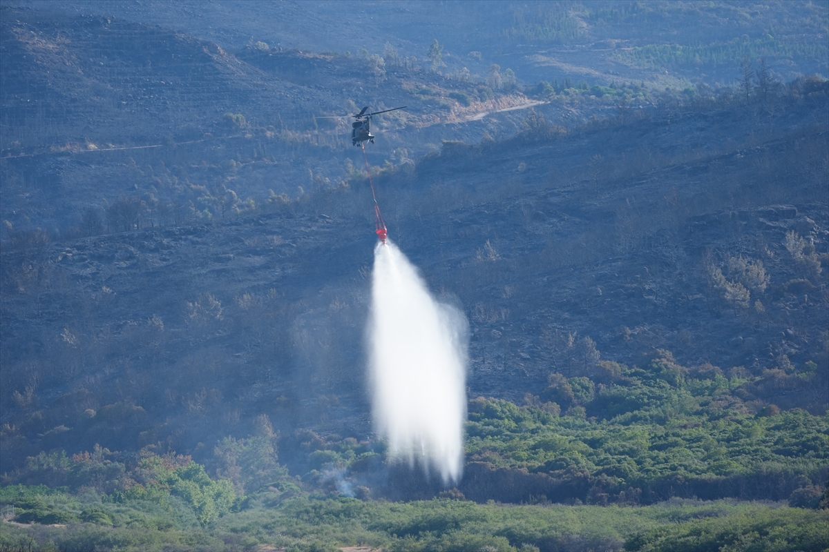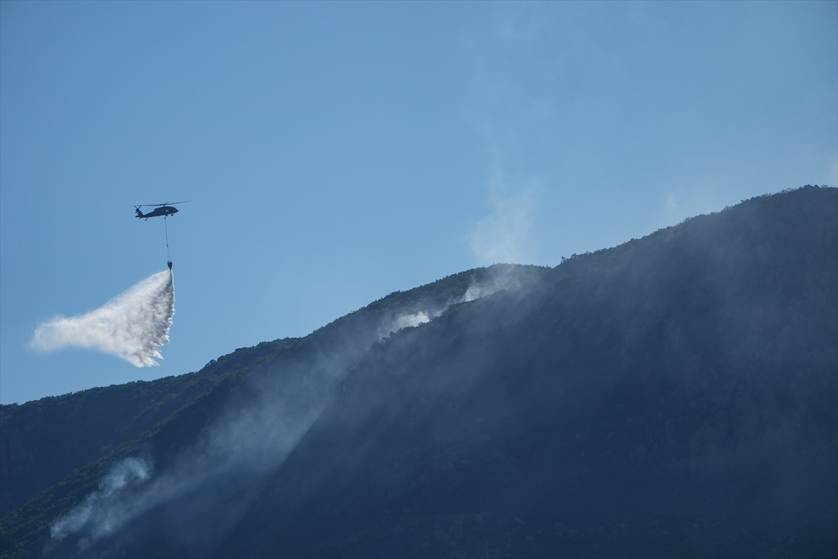 Türk Silahlı Kuvvetlerine (TSK) ait helikopterler de söndürme çalışmalarına destek veriyor.