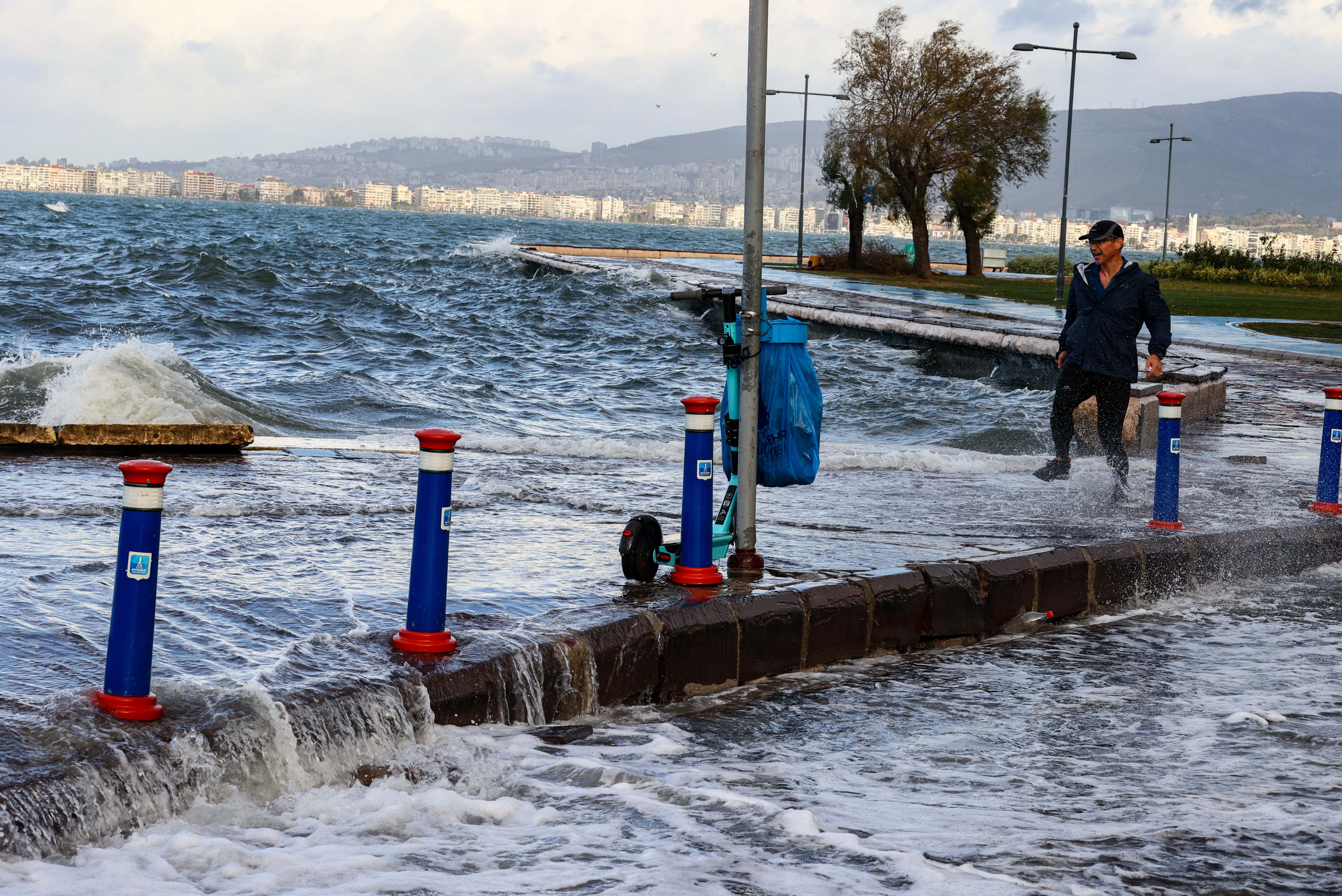 İzmir'in Konak ilçesinde lodos fırtınası nedeniyle deniz taştı.