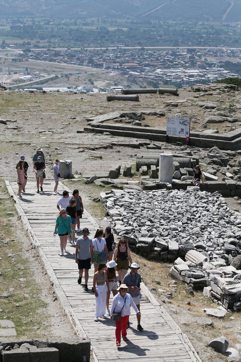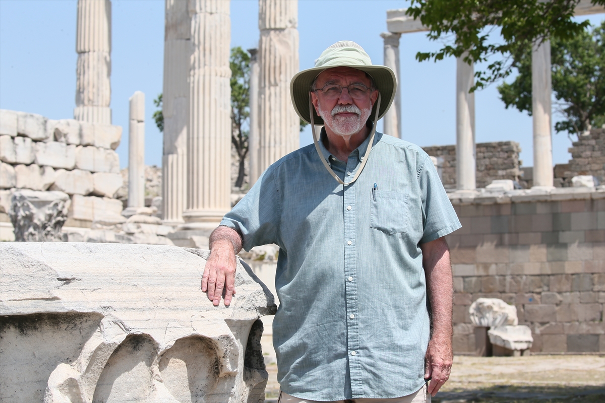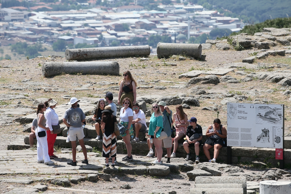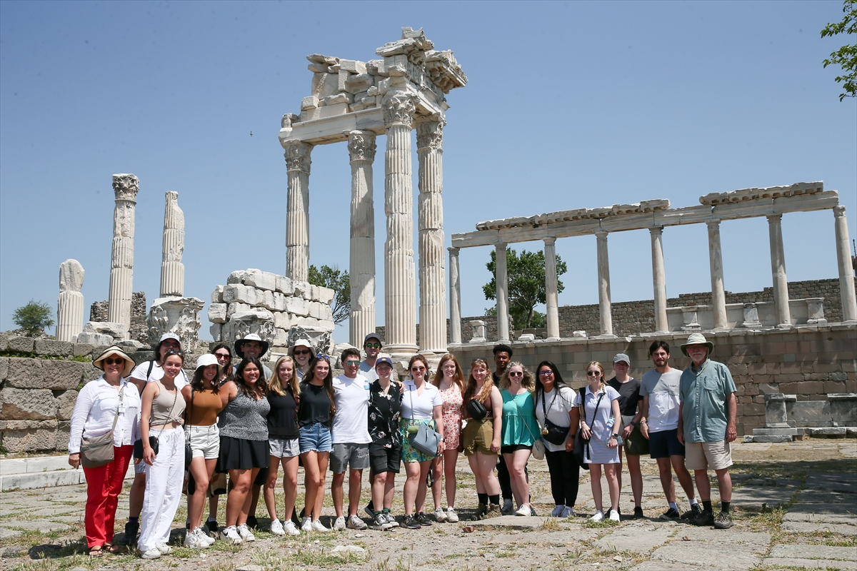 Claude Stulting ve grupta yer alan öğrenciler Bergama Antik Kenti'ni ziyaret etti. Rehber Tulu Gökkadar'dan tarihi bölge hakkında bilgi aldı.
