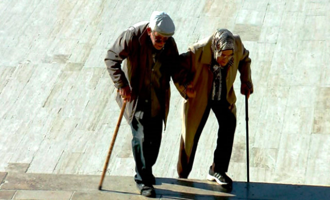 Cumhuriyet Bayramını kutlamak için Anıtkabir'i ziyaret eden yaşlı çiftin zorlukla da olsa Atatürk'ün huzuruna çıkması duygulu anlar yaşattı.
