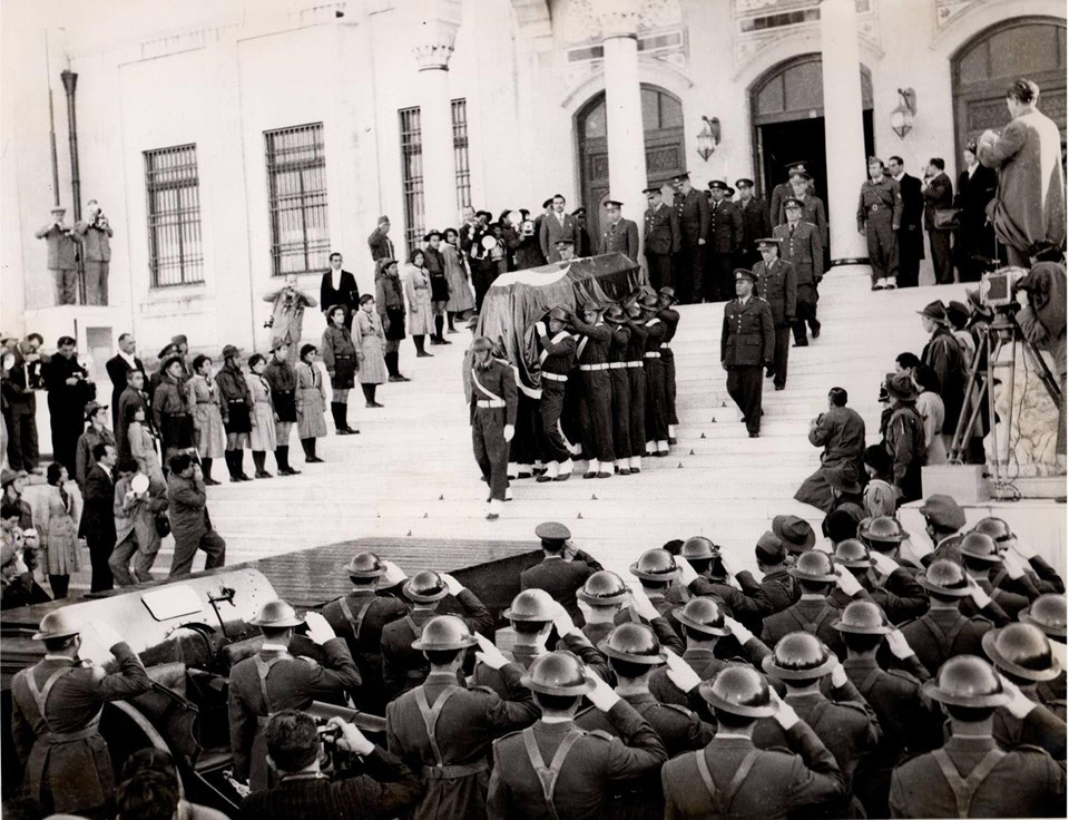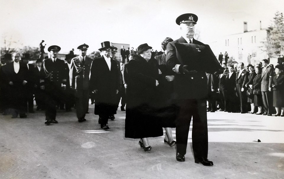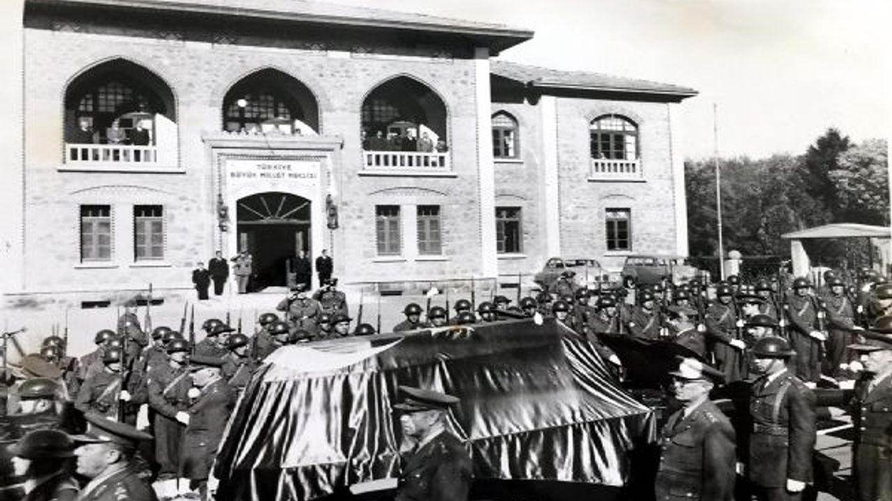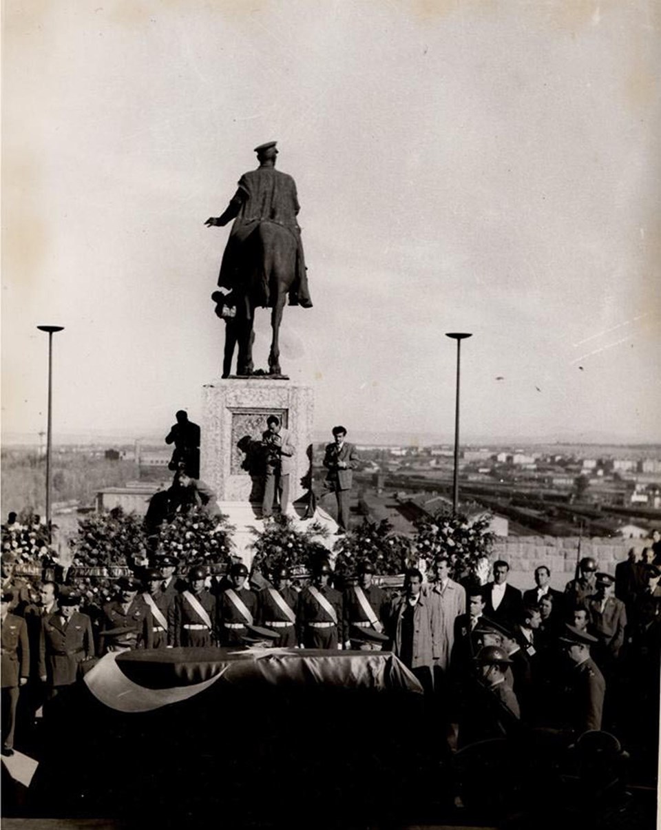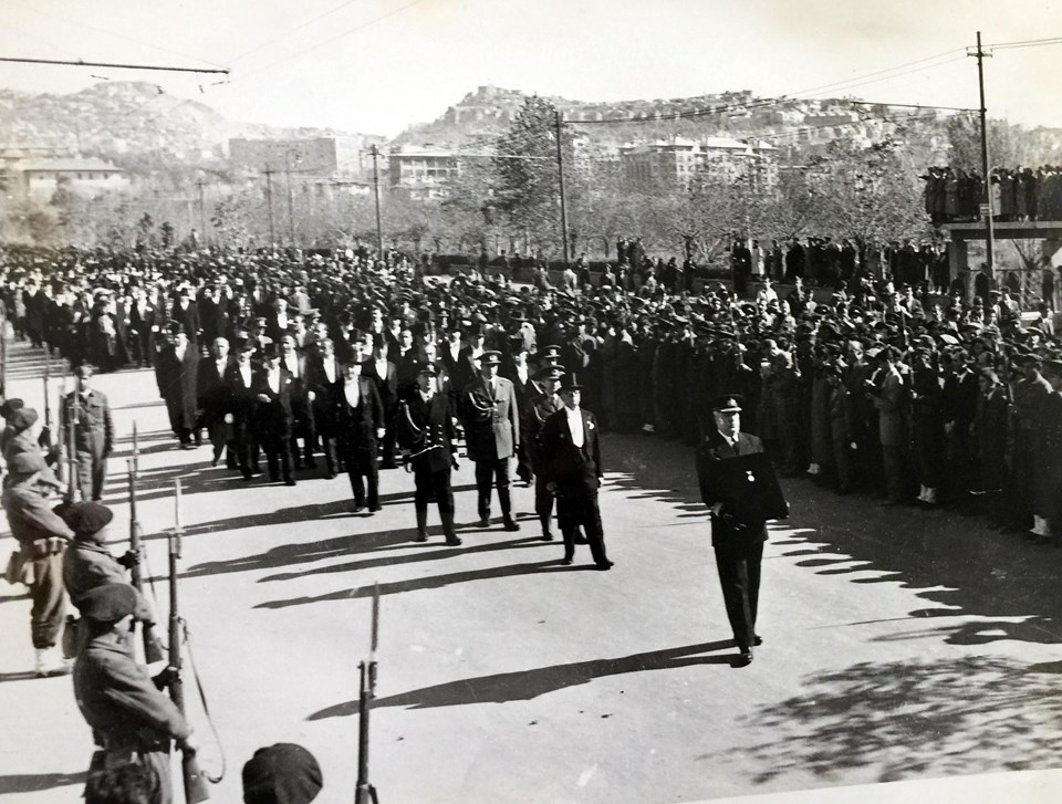 "10 Kasım 1953 günü Etnografya Müzesi önünde saat 09.05'de top atışları altında saygı duruşu sonrasında omuzlarda taşınan naaş top arabasına yerleştirildi. 136 genç asteğmenin çektiği top arabasına tören komutanı, karargahı Kara Harp Okulu Bandosu ve sancağı, Harp Okulu Alayı Flamaları, Hava Harp Okulu'ndan bir bölük, toplu halde bayrakları taşıyan gençler ile bir izci alayı iştirak etti."
