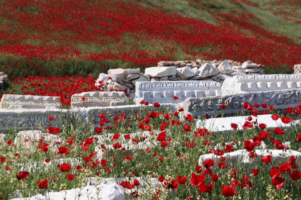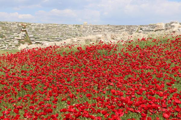 Denizli'de, 7 bin 500 yıllık geçmişe sahip olan ve birçok medeniyete ev sahipliği yapan antik kent Laodikya, baharın gelmesiyle rengarenk oldu. Antik kentin içindeki tarihi kalıntıların arasında ve çevresinde açan rengarenk çiçekler, güzel görüntüler oluşturdu. Kırmızı gelincikler ve beyaz papatyalar başta olmak üzere kır çiçeklerinin oluşturduğu manzarayı izlemeye gelenler ise fotoğraf çekti.