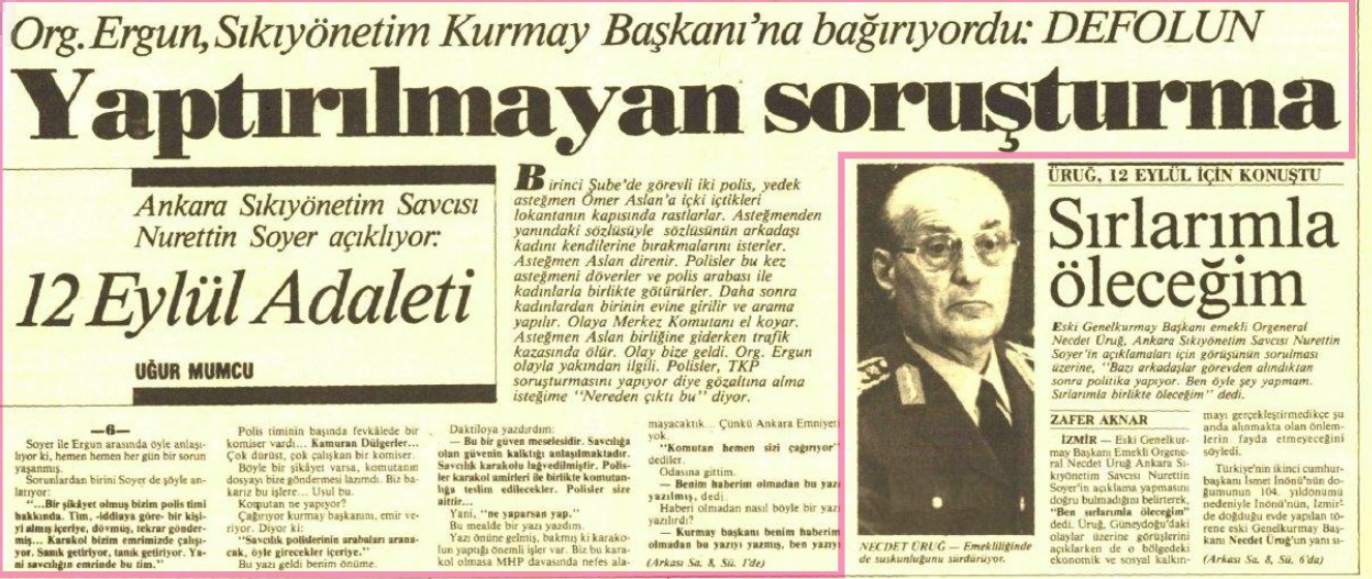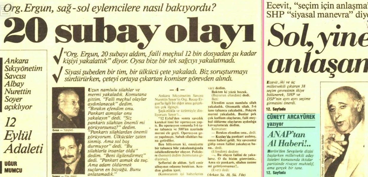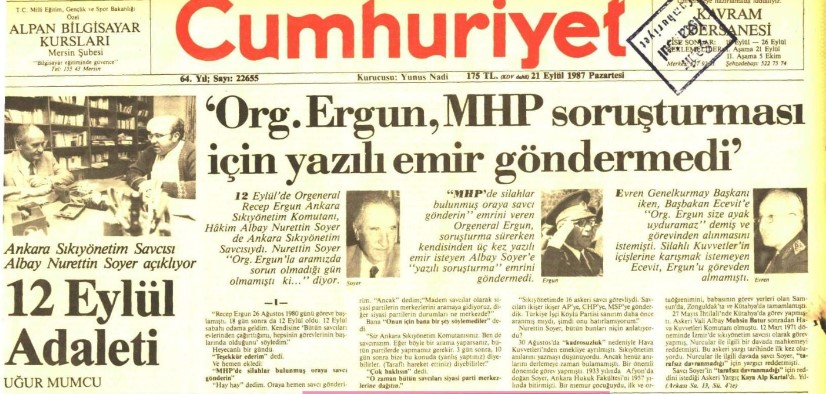 Ergun’un komutanlığı sırasında Ankara Sıkıyönetim Savcısı olan Nurettin Soyer de, bu söyleşi üzerine İzmir Mordoğan’daki yazlığında bir araya geldiği Uğur Mumcu’ya, “Şimdi olayları tek tek anlatacağım. Savcı ve yargıçlara baskı yapıldı mı, yapılmadı mı; bunu sizin ve Cumhuriyet okurlarının yorumlarına bırakacağım” demiş ve o dönemde yaşananları kendi gözünden aktarmıştı.