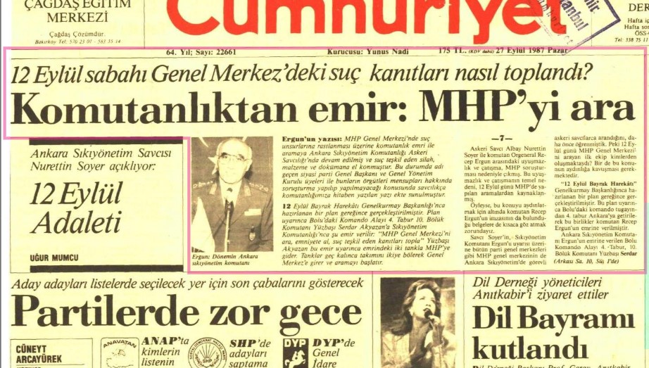 12 Eylül darbesi sonrasında MHP Genel Merkezi’ndeki aramanın Ergun’un ‘şifahi emriyle’ yapıldığını kaydeden Soyer, yazılı emir verilmesi için birkaç kez yazı yazdıklarını ancak dönemin Sıkıyönetim Komutanı’nın konuyu Milli Güvenlik Konseyi'ne havale ettiğini söylüyor ve ekliyordu: