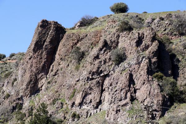 Tatilcilerin, modern çağdan geçmişe doğru uzanan yolculuk yaptığı Assos Antik Liman’a inen yolun sol kısmındaki yamaçta yer alan kayalar ve taş parçaları, depremler ve doğa koşullarının etkisiyle düşmeye başladı.