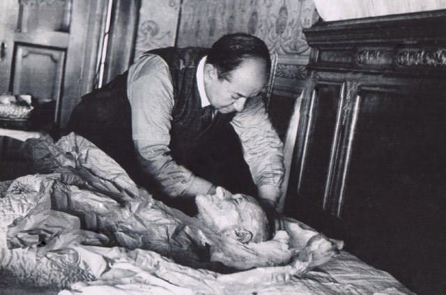 Bir eli karyolaya dayanmış olan Kamil Bey, diğer elindeki ıslatılmış pamukla, Atatürk’ün ağzına su vermek çabasındaydı...