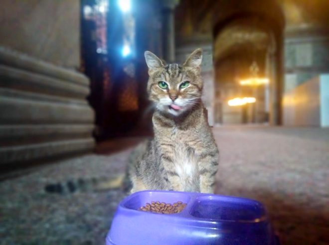Ayasofya'nın ayrılmaz parçası haline gelen Gli, 2004 yılından beri bu kutsal mekanın bekçiliğini yapıyor. Ayasofya'ya gelenler onu görmeden ayrılmadığı gibi onun için gelenler dahi oluyor.