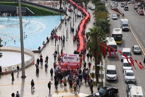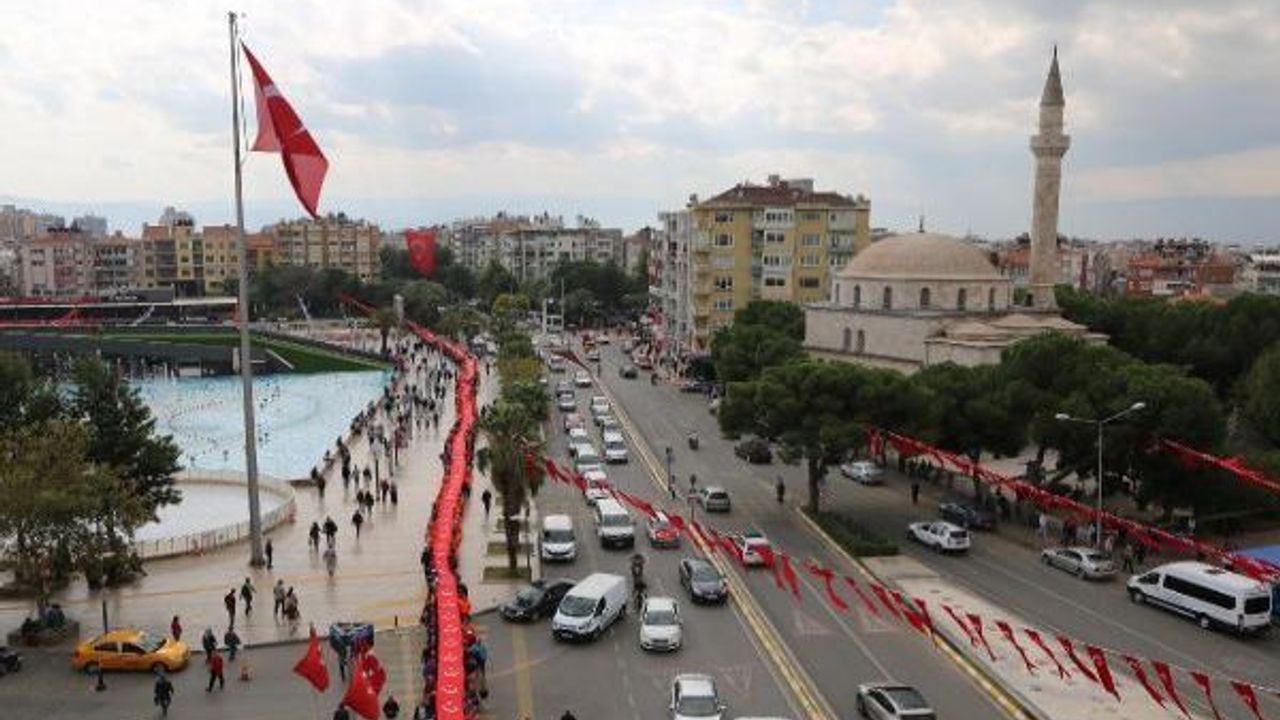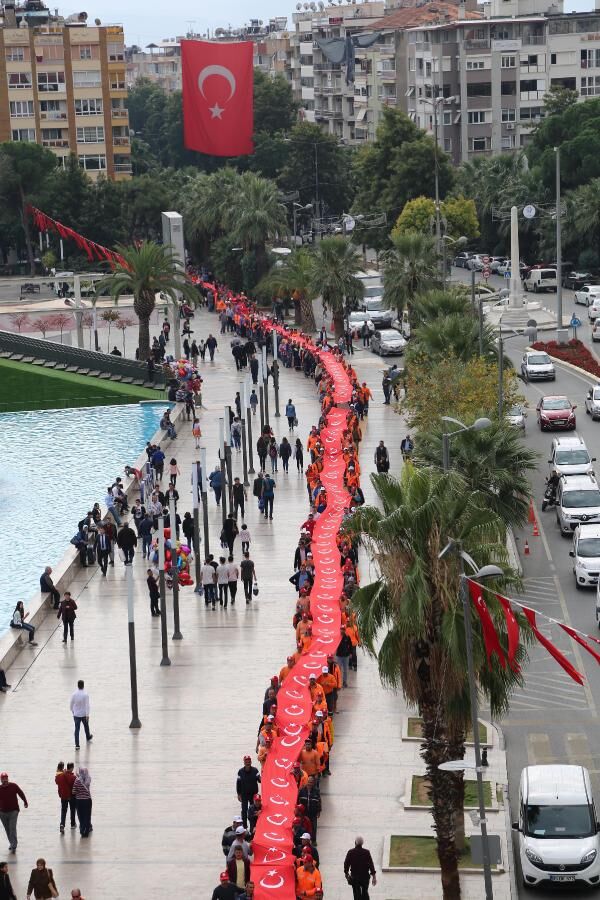 Daha sonra bin kişinin taşıdığı 500 metre uzunluğundaki Türk bayrağı ile kortej yürüyüşüne geçildi. Kortej yürüyüşü, Efeler Belediyesi önünde başlayarak Atatürk Bulvarı'na kadar sürüp, Valilik önünde son buldu. Bayrağı görenler uzun süre alkışladı.