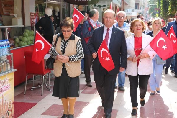Çelek sunma töreni öncesinde ise, Efeler Belediyesi'nin organize ettiği kortej yürüyüşü yapıldı. Yürüyüş öncesi konuşan Belediye Başkanı Mesut Özakcan, "Bugün Cumhuriyetimizin 94. yıldönümünü kutlamaktayız. Cumhuriyet, barış demektir, huzur demektir. Türkiye Cumhuriyeti yolda bulunmadı. Cumhuriyet, şehit kanlarının ve analarımızın gözyaşlarının üzerine kurulmuştur. Cumhuriyet kimsesizlerin kimsesidir" dedi.