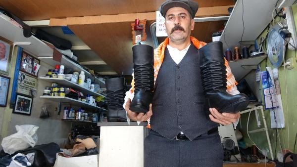 Genelde Yörüklerin ve devecilerin giydiği körüklü çizmeler, ata binen ciritçilerin de tercihi oluyor. Tamamen deri ile köseleden imal edilen körüklü çizme, yaz kış giyiliyor. Gündüz, 13 günde yapımını tamamlayabildiği bir çift çizmeyi 1200 TL'ye sattığını söyledi.