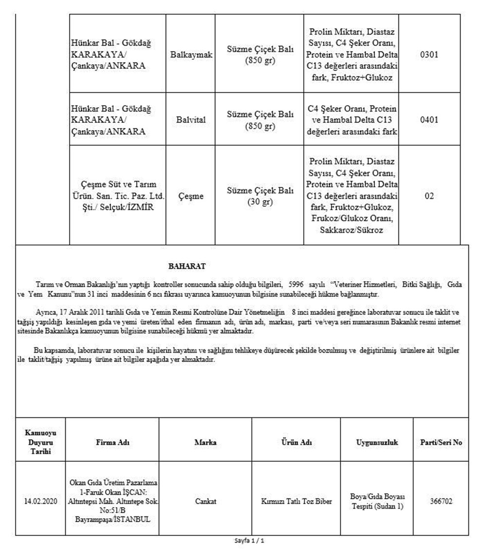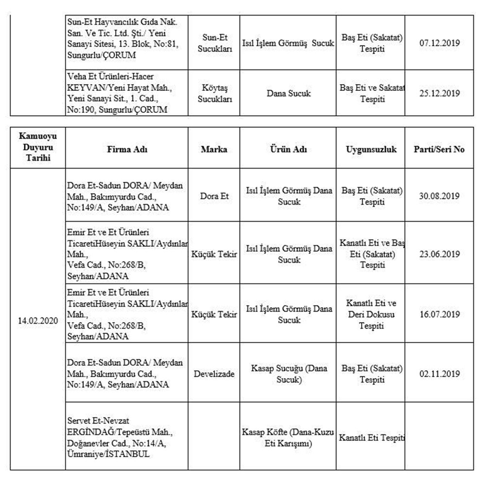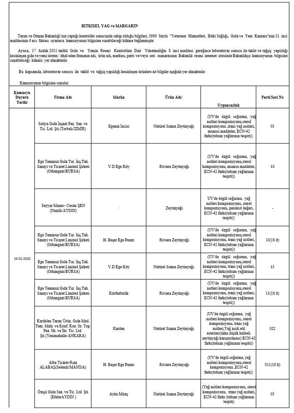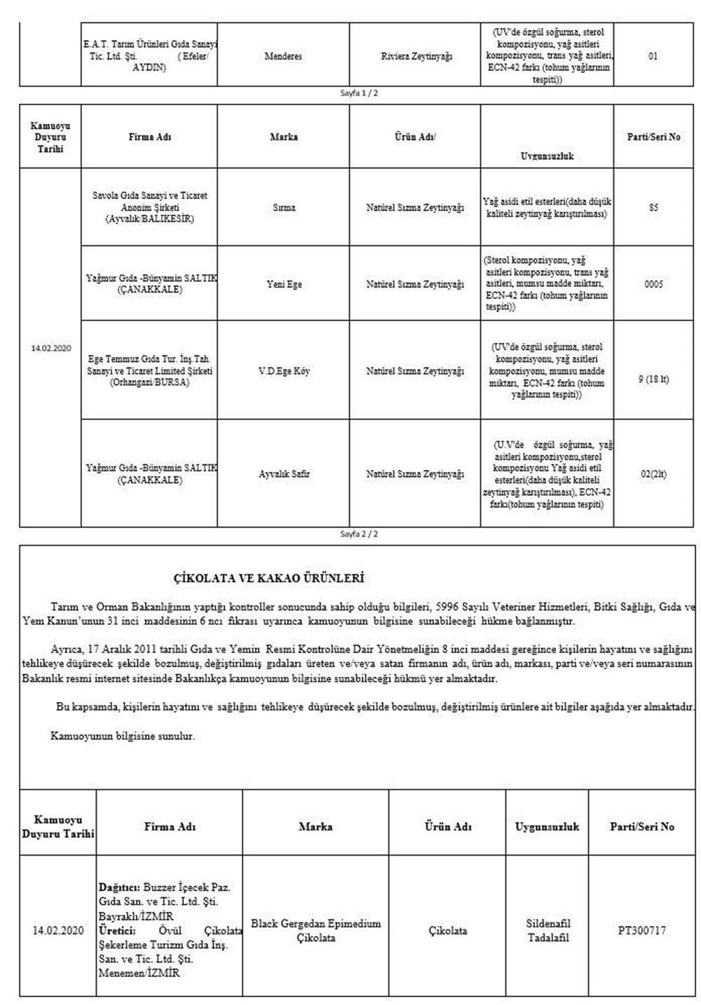 Bakanlığın paylaştığı ve içinde İzmir'de de hileli üretim yapan firma ve ürünlerin listesi:
