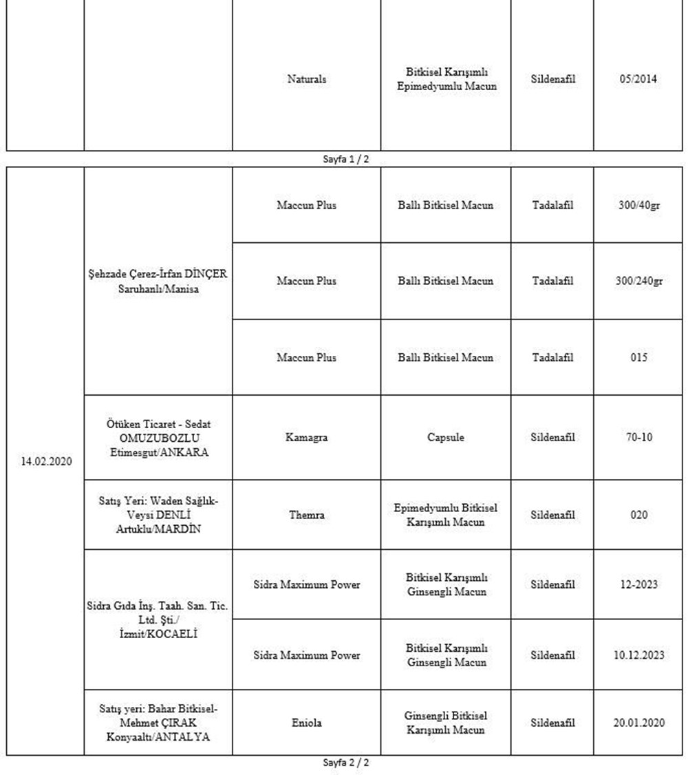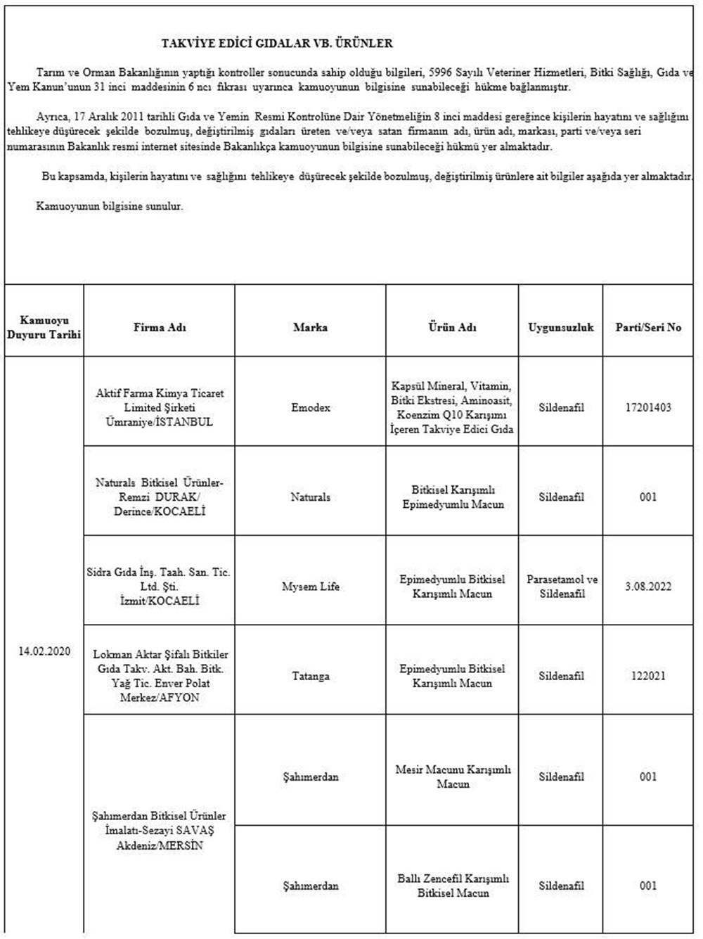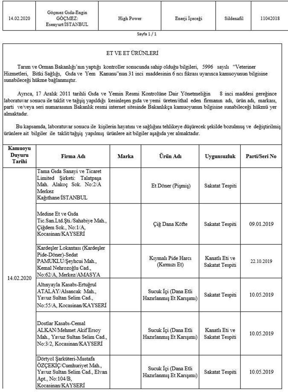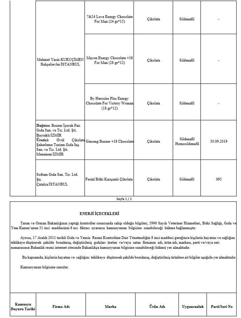 Bakanlığın paylaştığı ve içinde İzmir'de de hileli üretim yapan firma ve ürünlerin listesi: