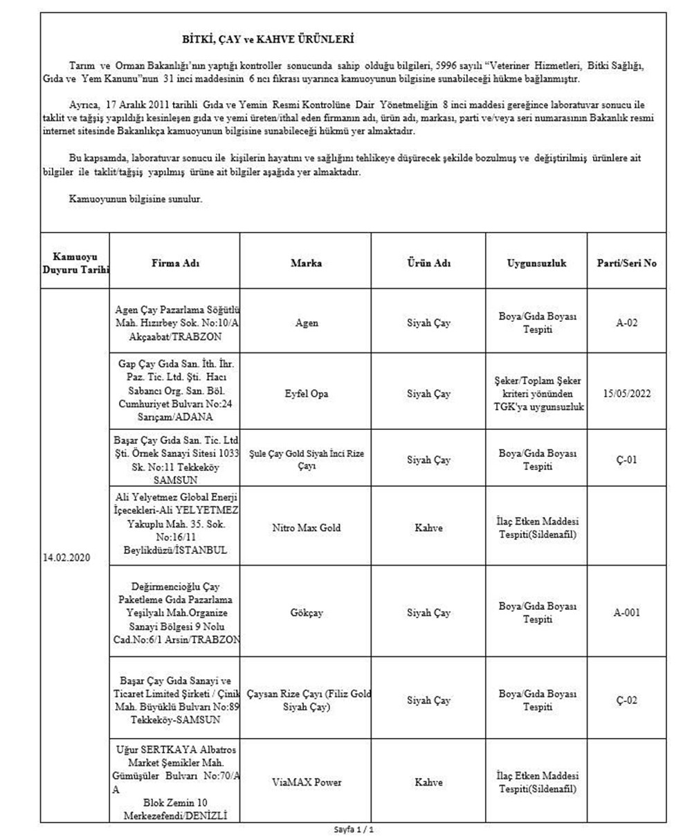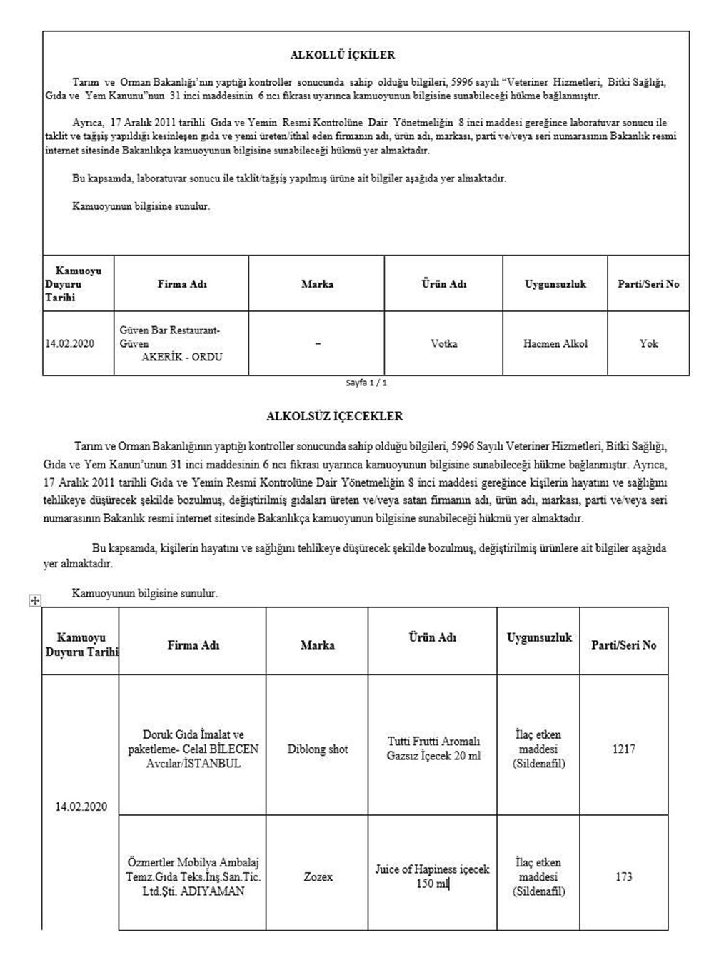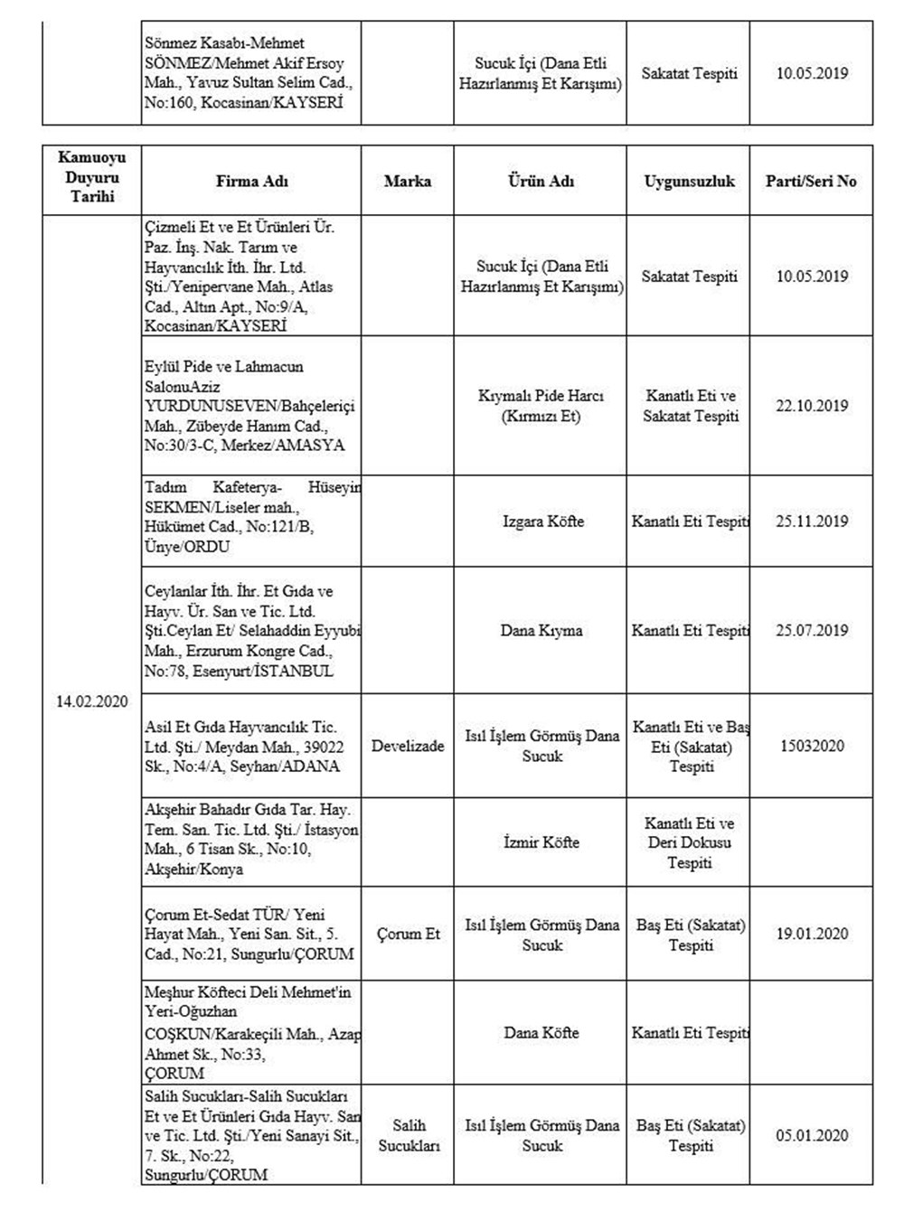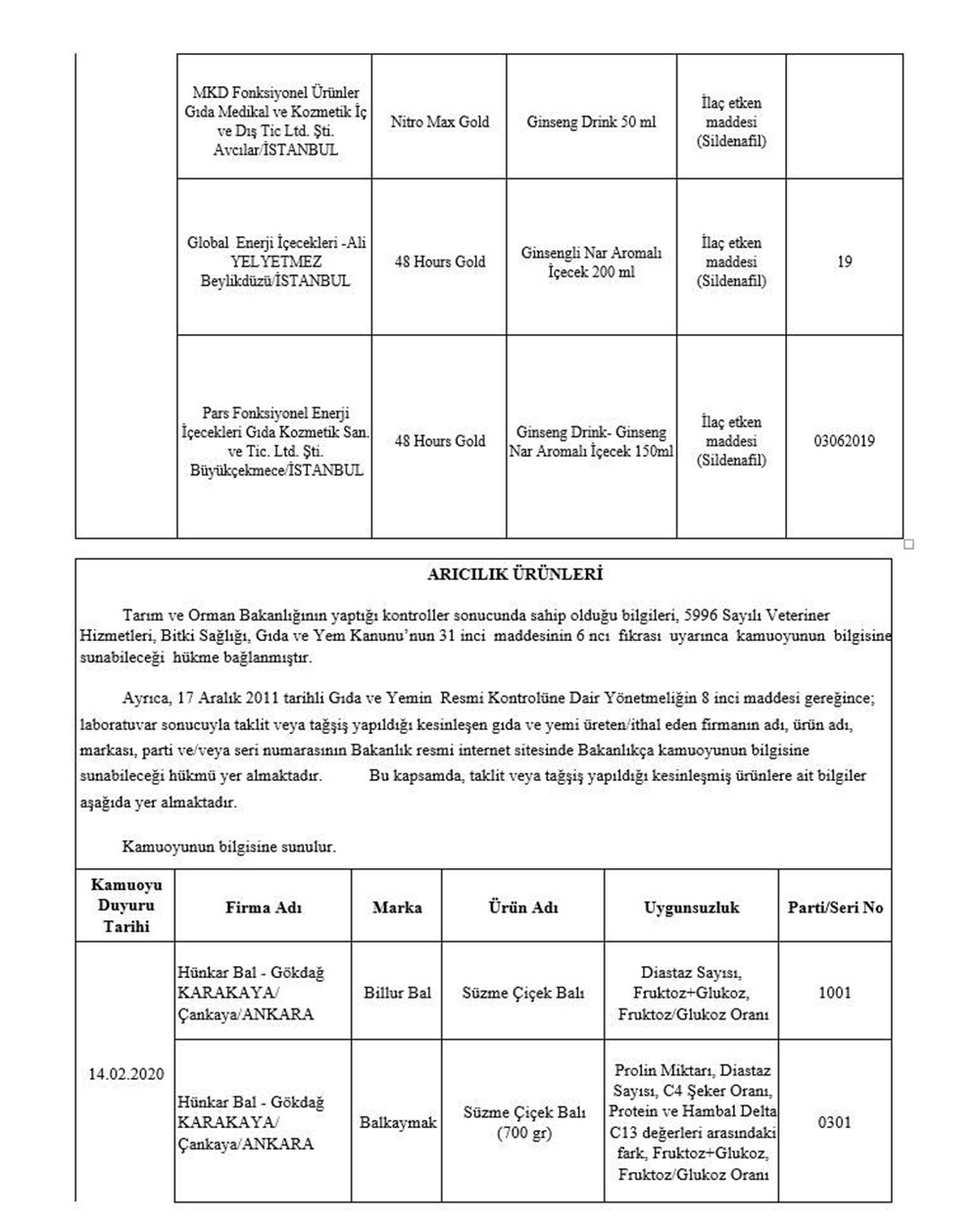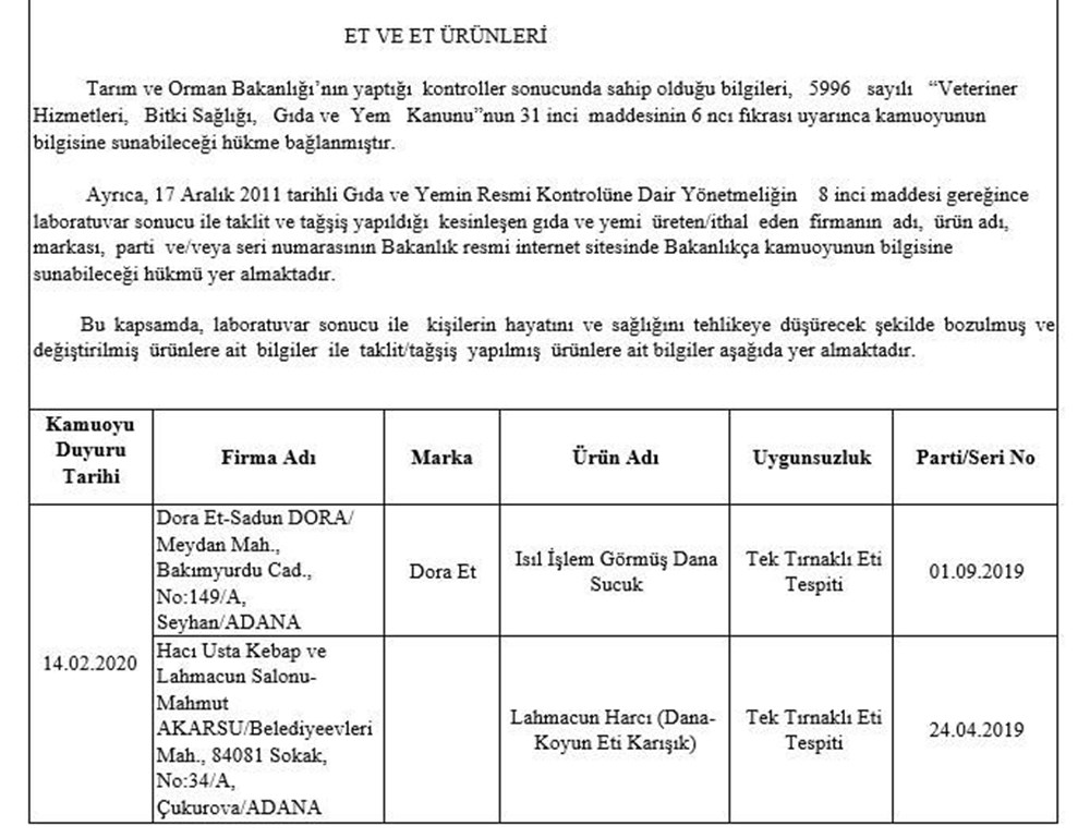 Tarım ve Orman Bakanlığı, gıda ürünlerinde hile yapan 74 firma ve 99 ürünü ilan etti.