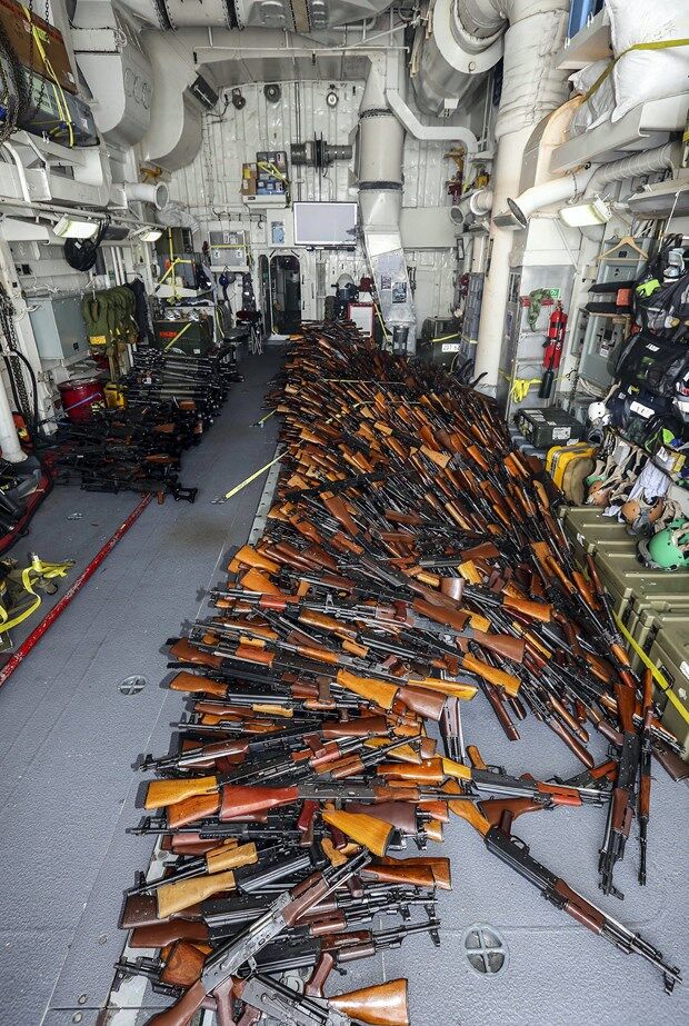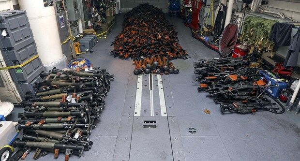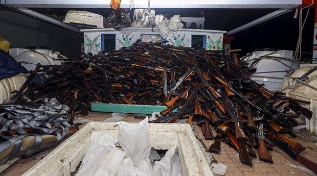 Umman açıklarında Somali'ye giden balıkçı teknesinde 2 binden fazla silah ve mühimmat ele geçirildi. Herhangi bir devlete ait olmayan balıkçı teknesine silahların nasıl yüklendiği bilinmiyor. (ntv.com.tr)