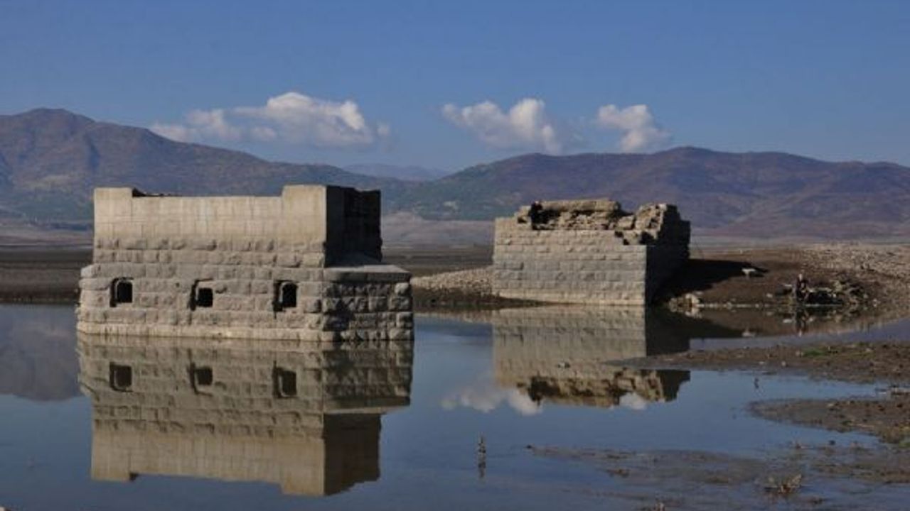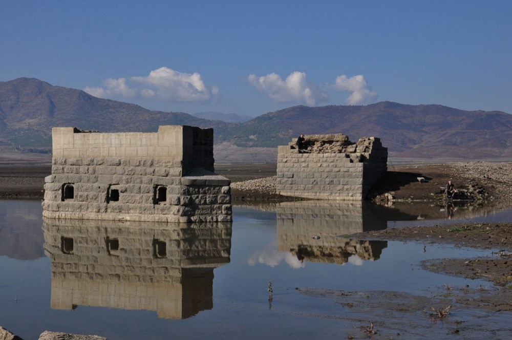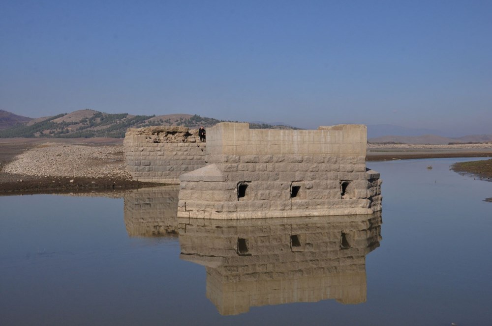Gaziantep'te 1974 yılında yapılan Tahtaköprü Barajı’nda su seviyesinin düşmesiyle, su altında kalan demiryolu köprüsünün ayakları ortaya çıktı.