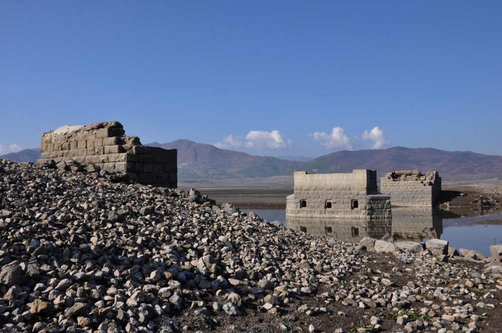 Yükseltme çalışmaları nedeniyle su seviyesinin düşmesinin ardından 20 kilometrelik kısmı sular altında kalan, İslahiye'yi Suriye'ye bağlayan Fevzipaşa- Meydanı Ekbez demiryolu köprüsü de ortaya çıktı.