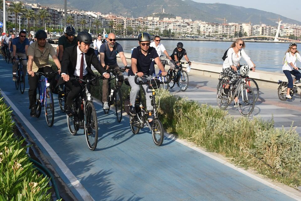 Başkan Soyer Pazartesi mesaisine bisikletle gitti!